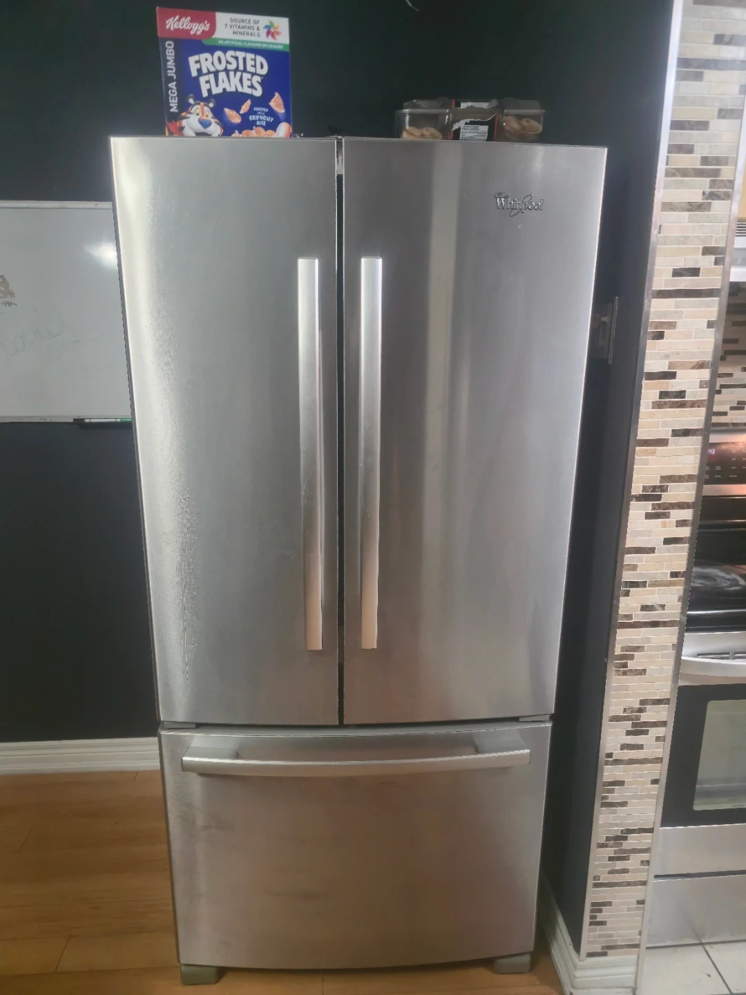 Selling a Whirlpool French door refrigerator in stainless steel. The fridge has plenty of space and adjustable shelves to fit all your groceries. It also features a bottom freezer with a pull-out drawer for easy access. I'm selling it because I'm moving .The refrigerator works at 100.