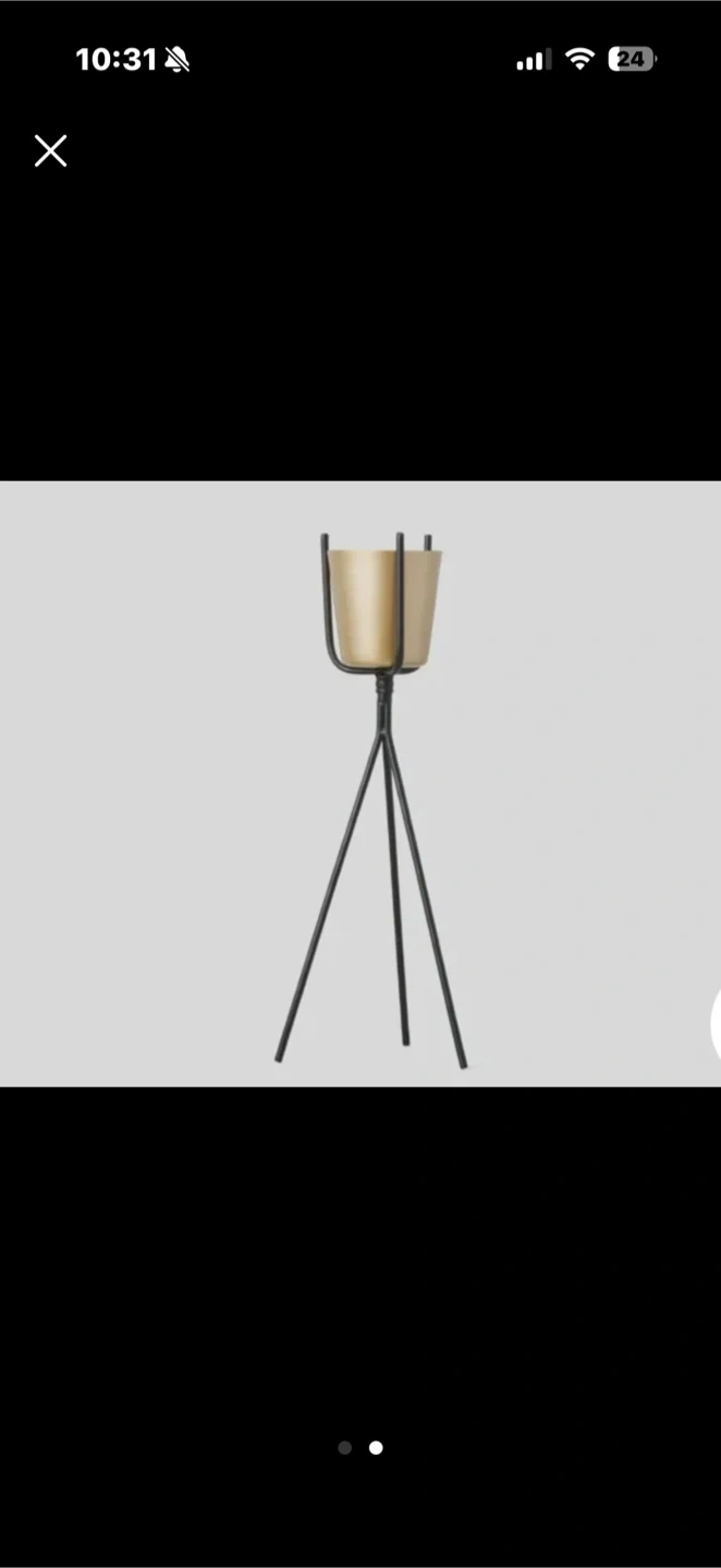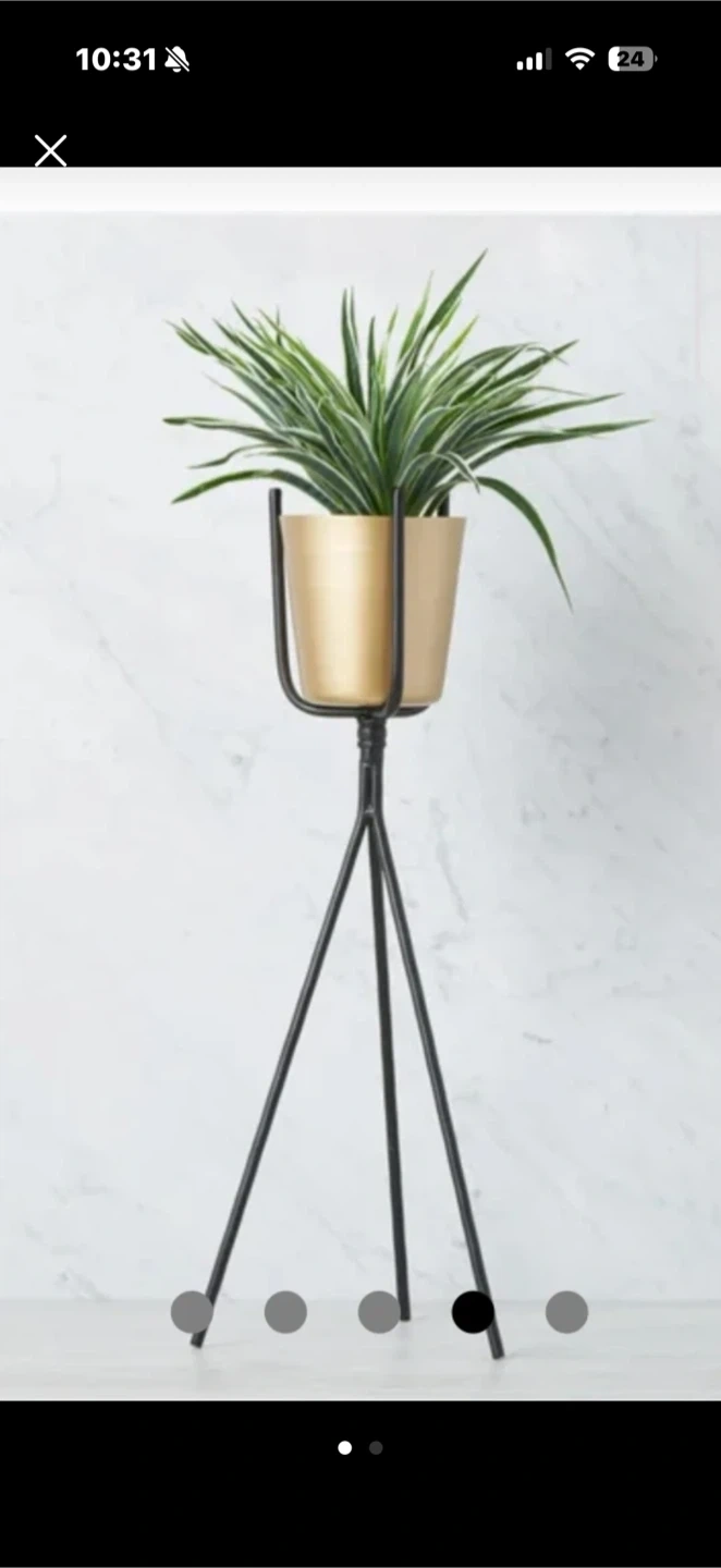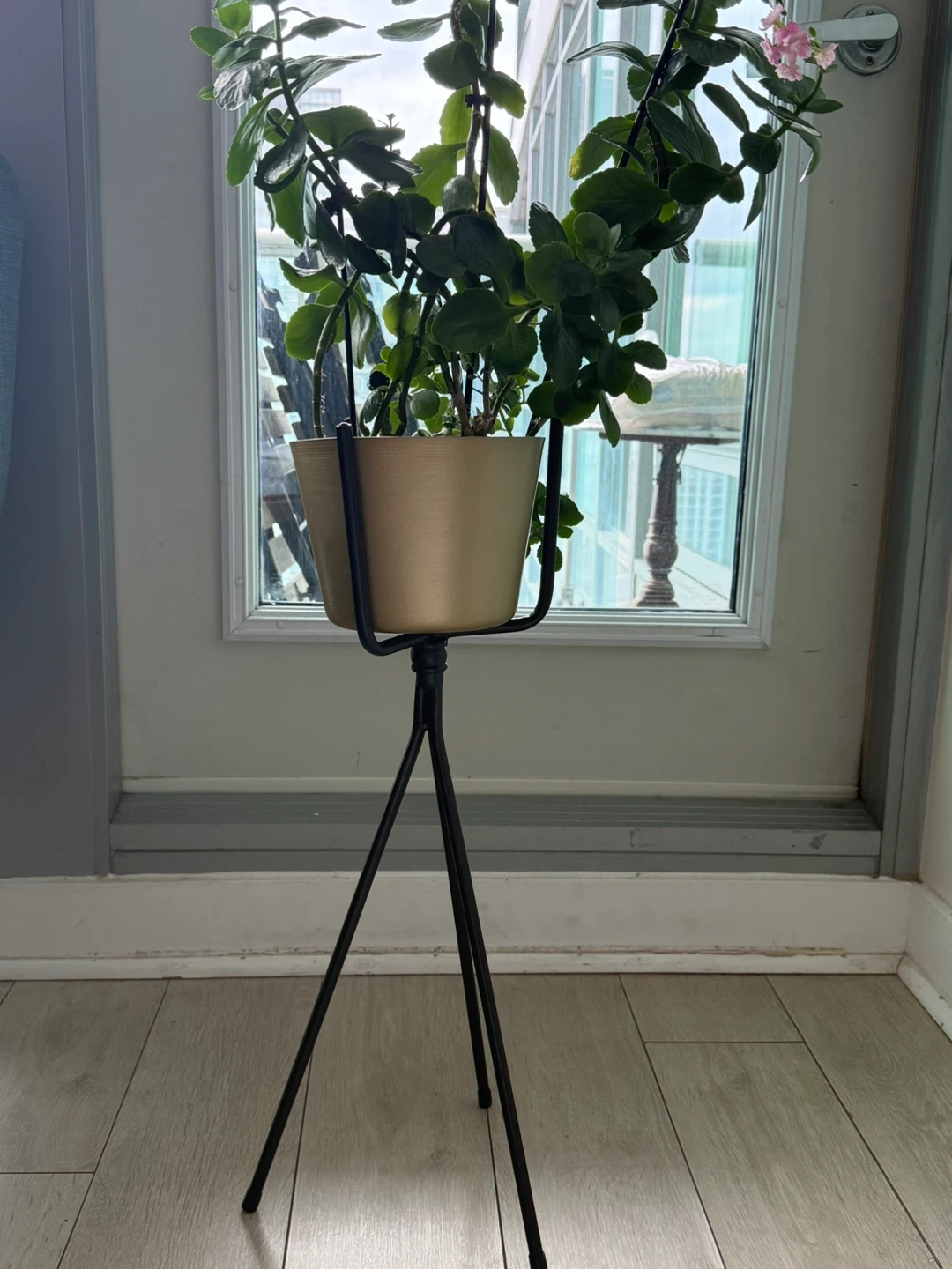 This gold planter with a sleek black metal stand is just the thing! It's perfect for displaying your favourite plants and adding a stylish touch to any room.