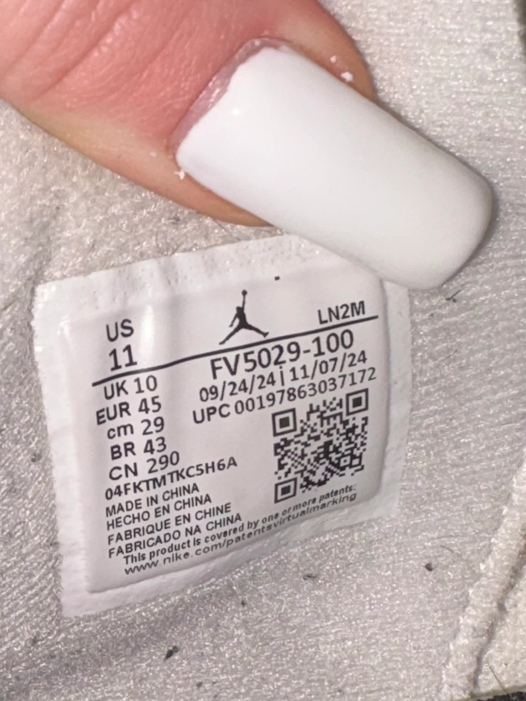 Selling a pair of Nike Air Jordan 4 Retro in the White Cement colourway. They are a US size 11. The manufacturing date on the label is 2024 September 23