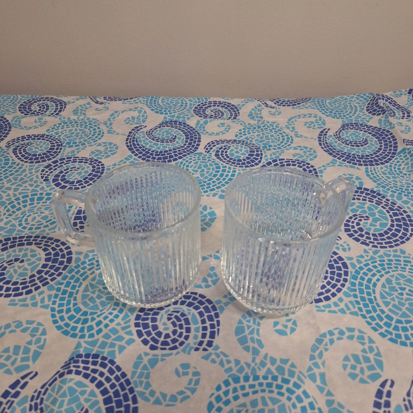 Selling a clear glass mugs set. Perfect for your morning coffee or tea! The set has a simple, elegant design with vertical ribbed detailing. In great condition and ready for a new home