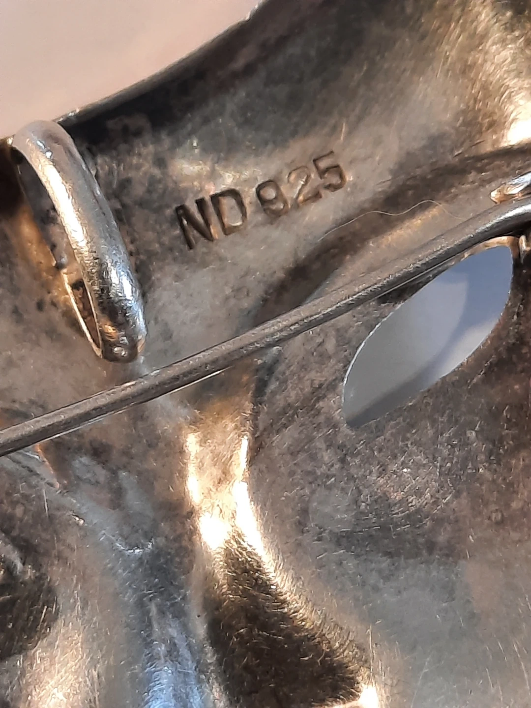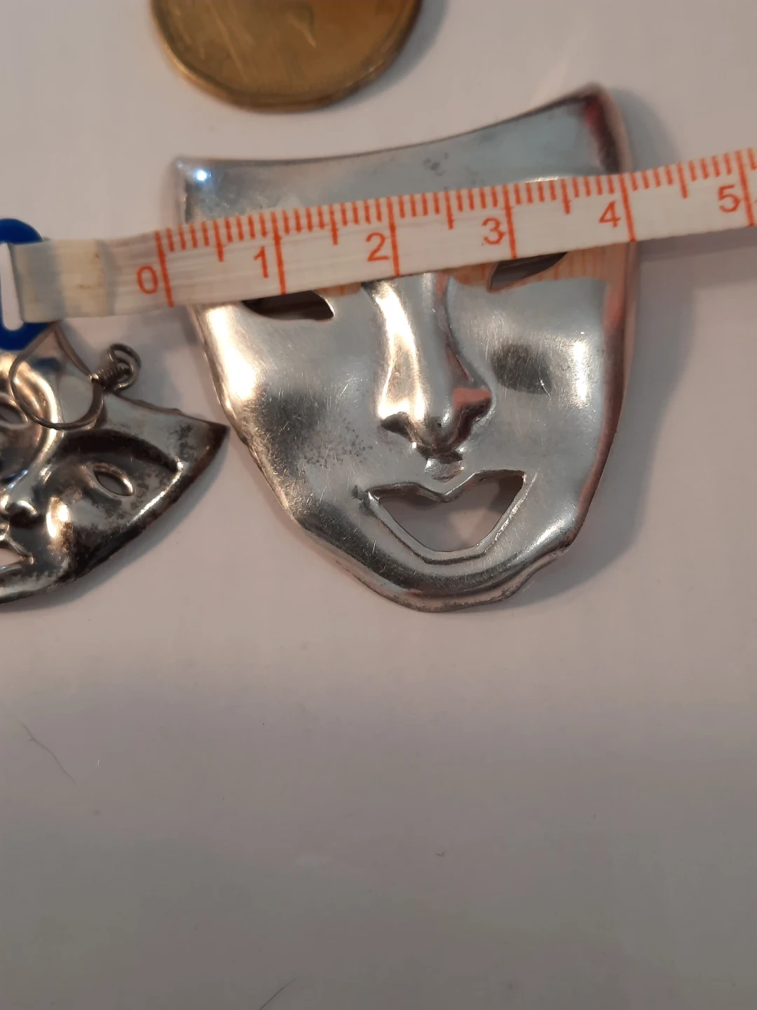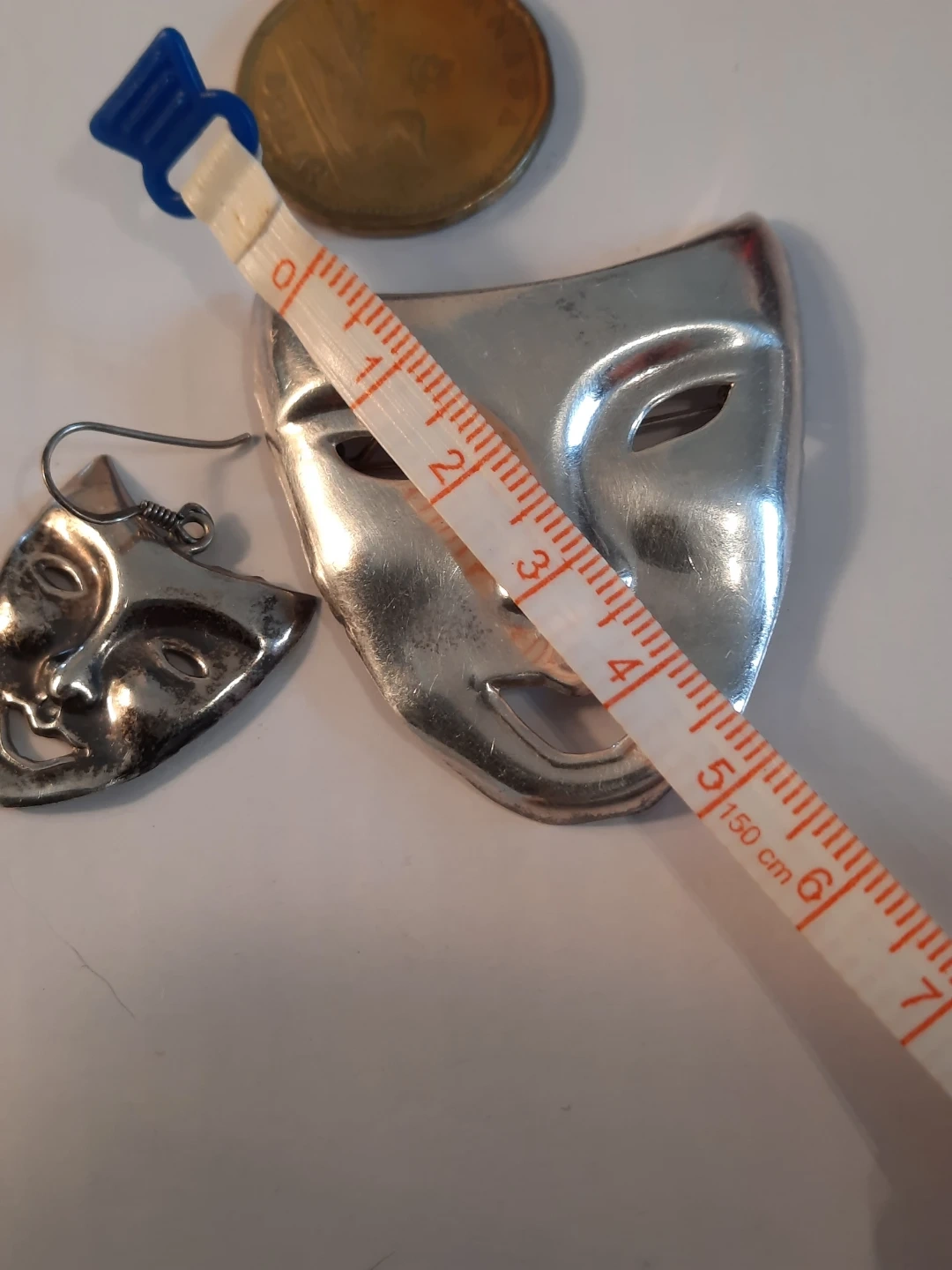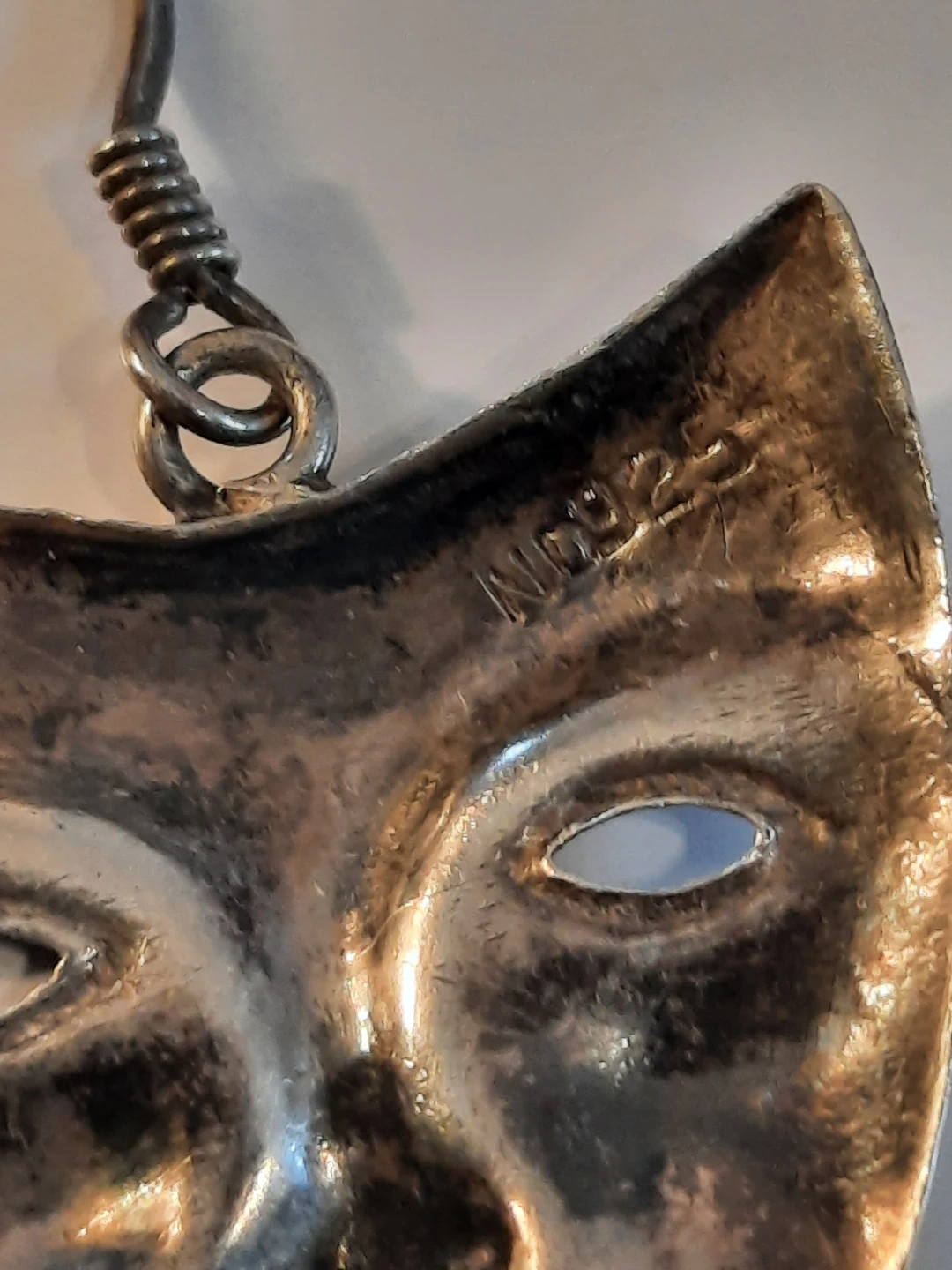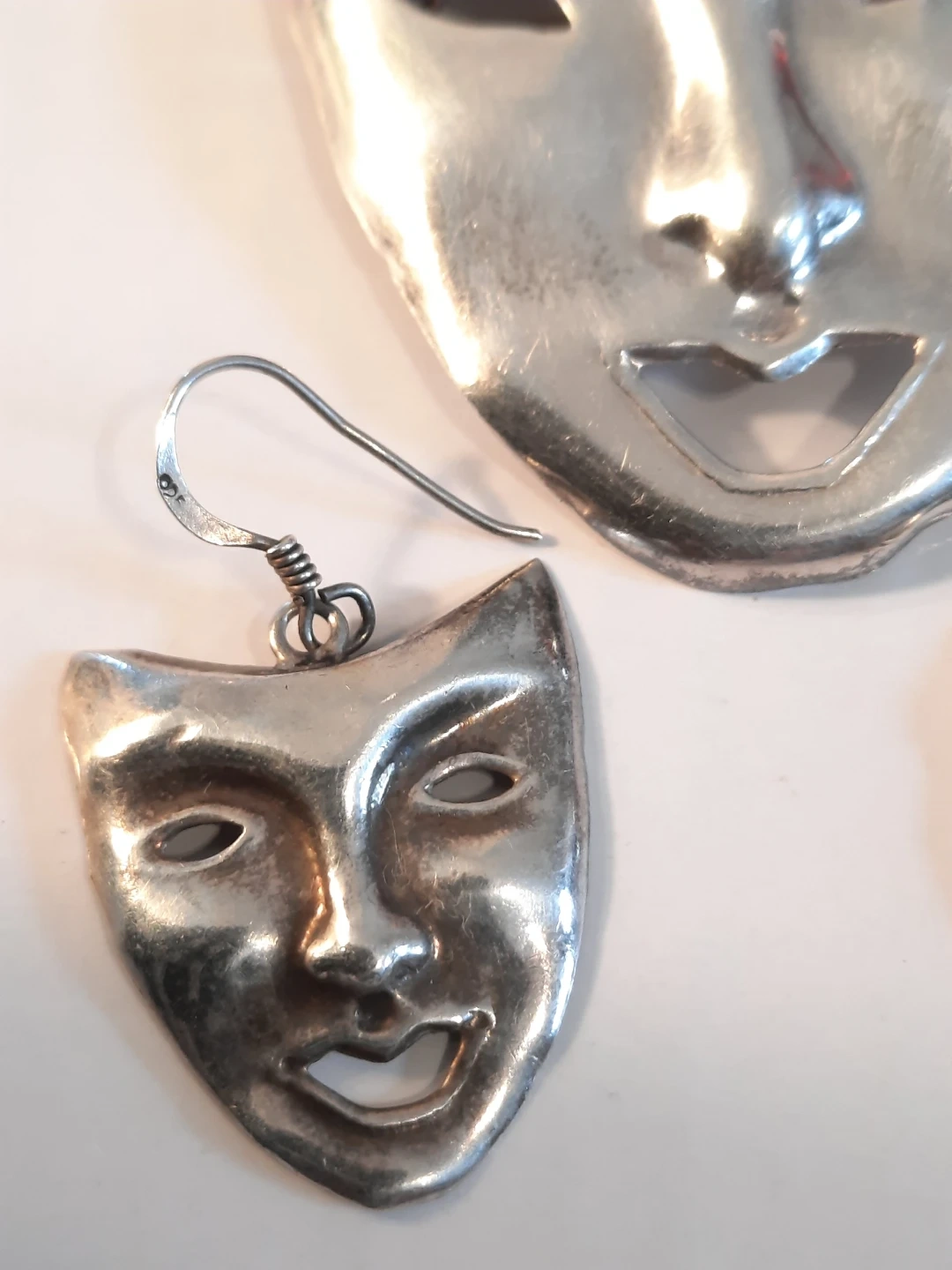 Selling a vintage set of ND 925 silver jewellery! This includes a mask brooch and matching earrings. The pieces are marked with 'ND 925', indicating they are sterling silver.