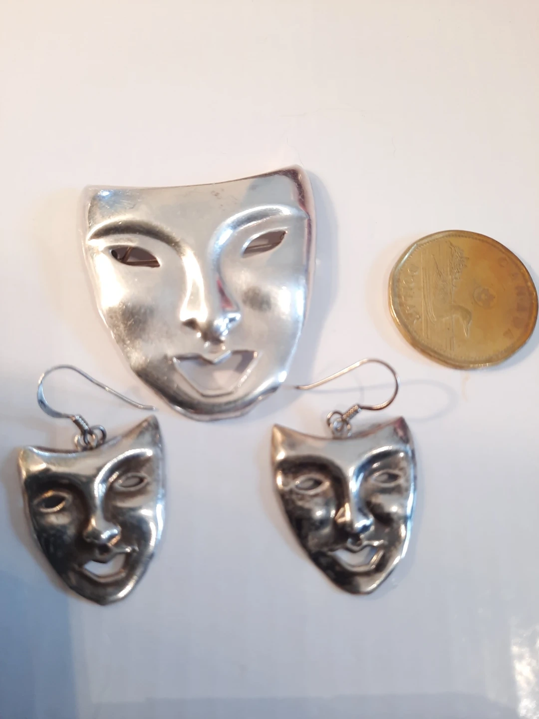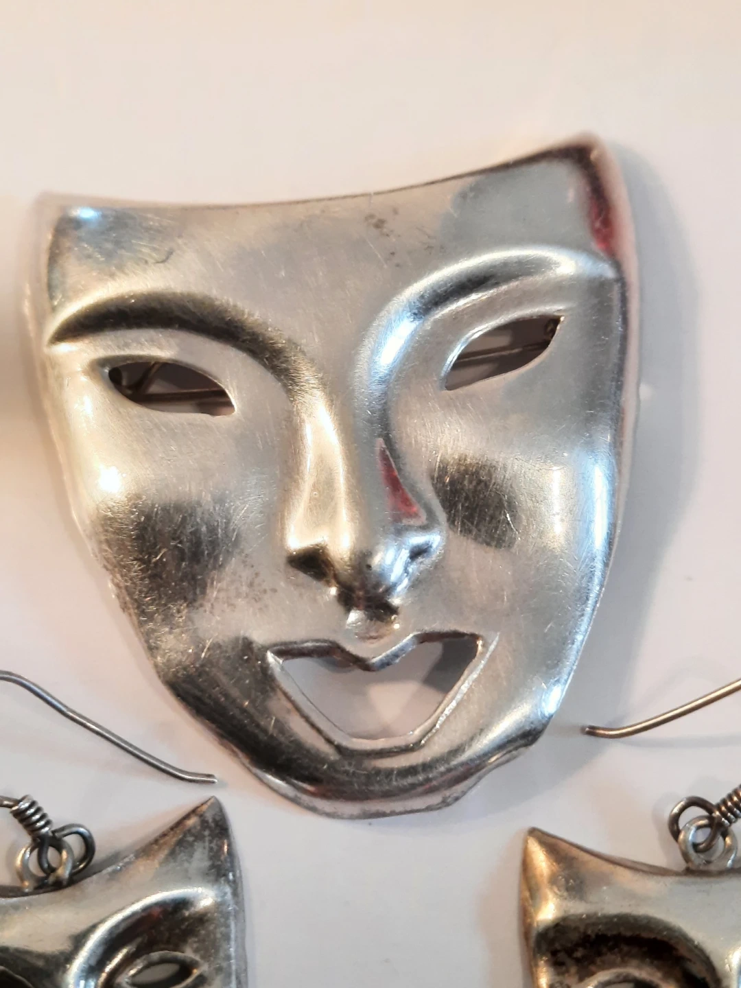 Vintage ND 925 Silver Mask Brooch & Earrings Set