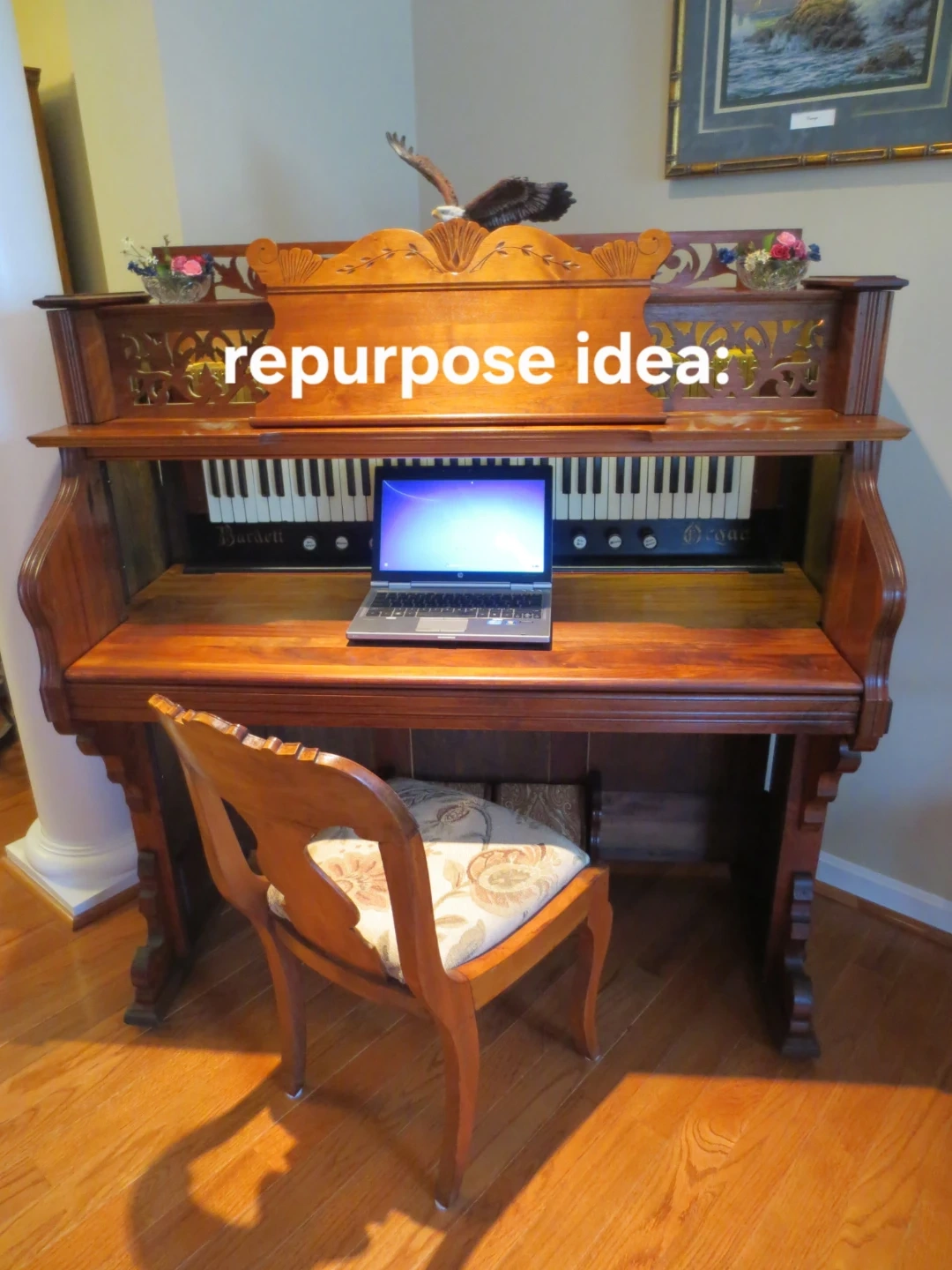 This solid wood instrument could also be repurposed into a unique and beautiful desk or.....?