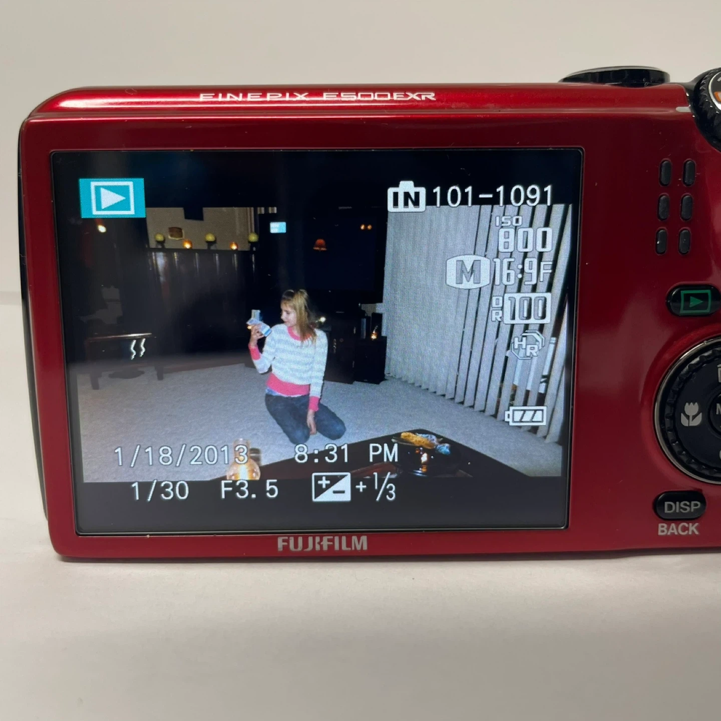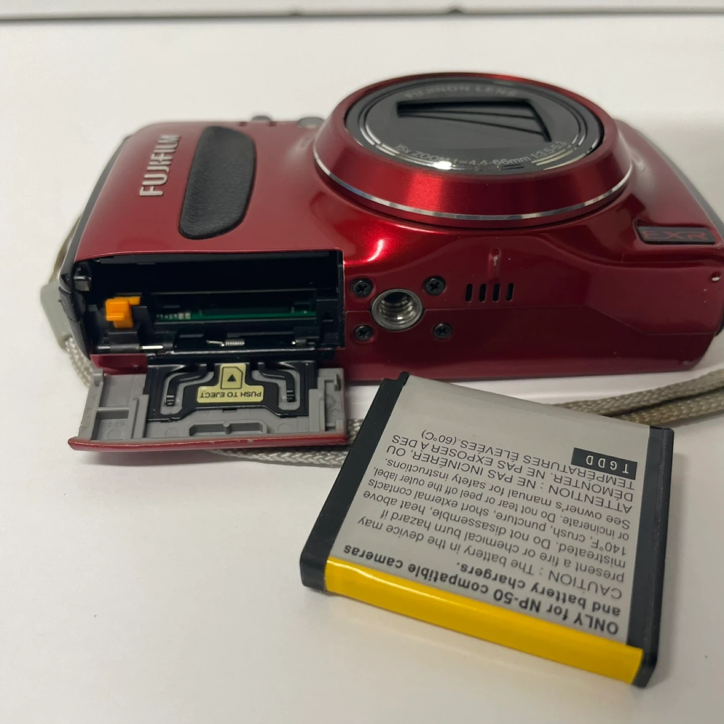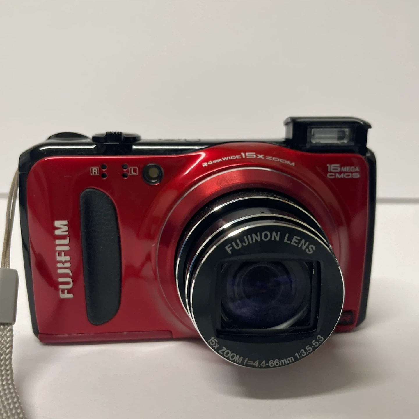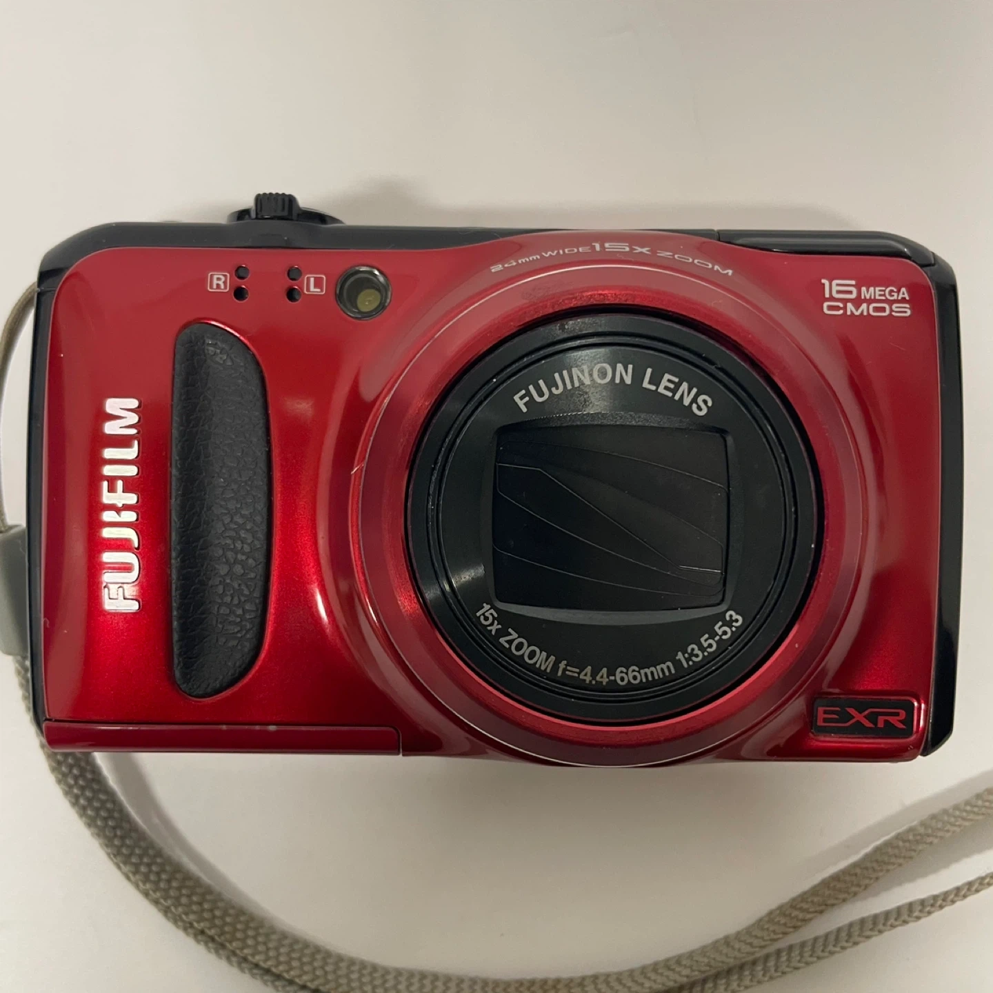 Selling a Fujifilm FinePix F500EXR digital camera in red! It features a Fujinon lens with 15x zoom and captures 16-megapixel images. Great for everyday photos and travel