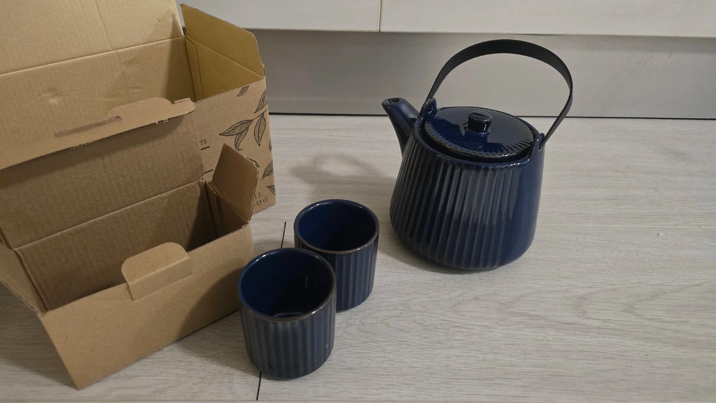 This is a beautiful Table Passion Tiao tea set, which includes a teapot and two matching goblets! The set is in excellent condition and comes with its original box.