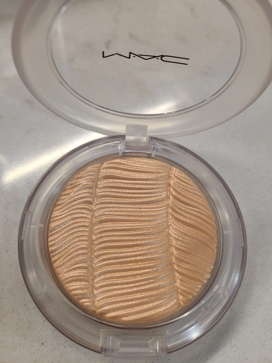 MAC Extra Dimension Skinfinish in the shade Post-Modernist Peach! It's a beautiful highlighter that gives your skin a lovely glow.