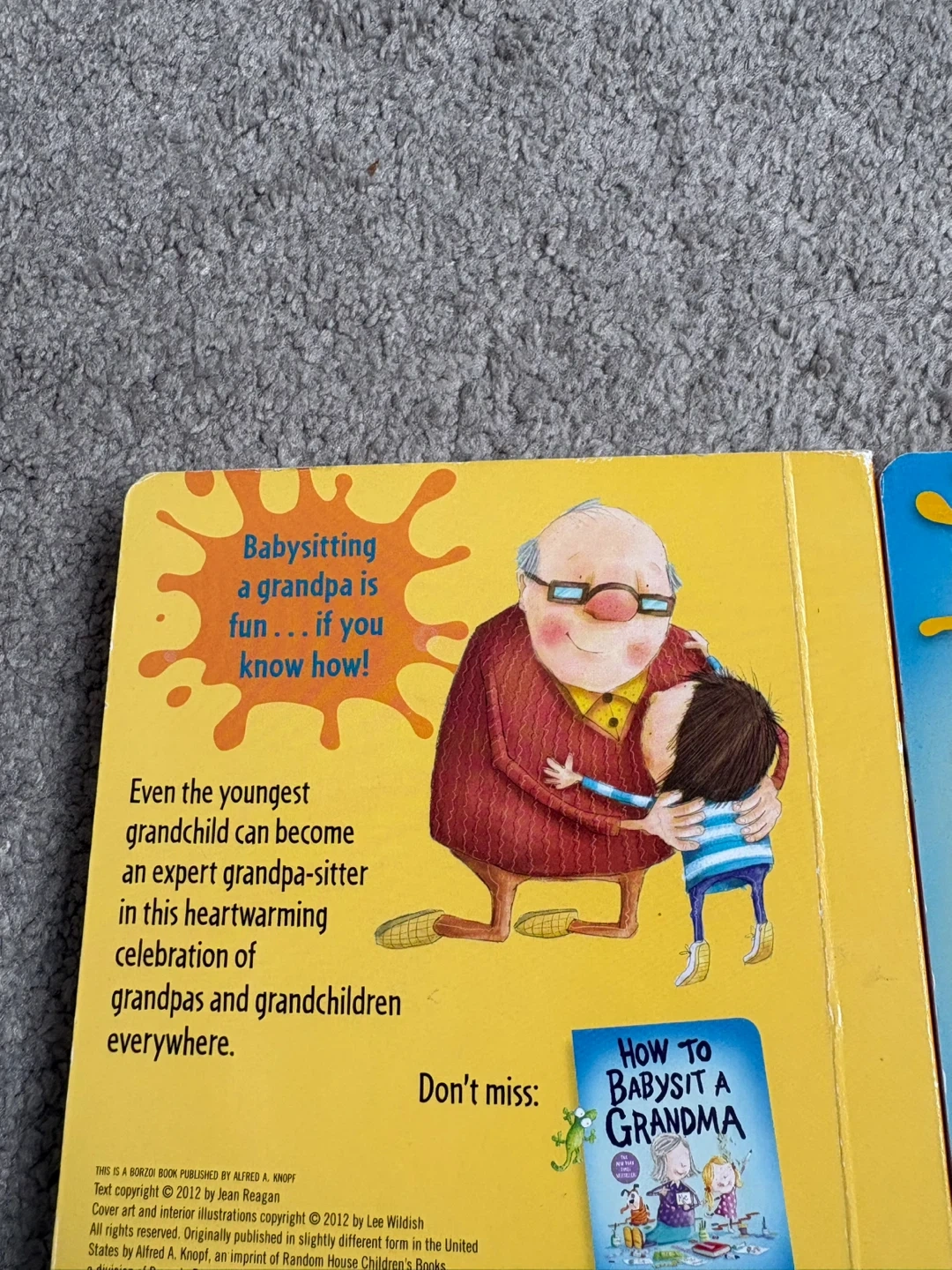 a set of two children's board books: "How to Babysit a Grandma" and "How to Babysit a Grandpa"! They are written by Jean Reagan and illustrated by Lee Wildish. These books are a fun and heartwarming celebration of grandparents and grandchildren everywhere.