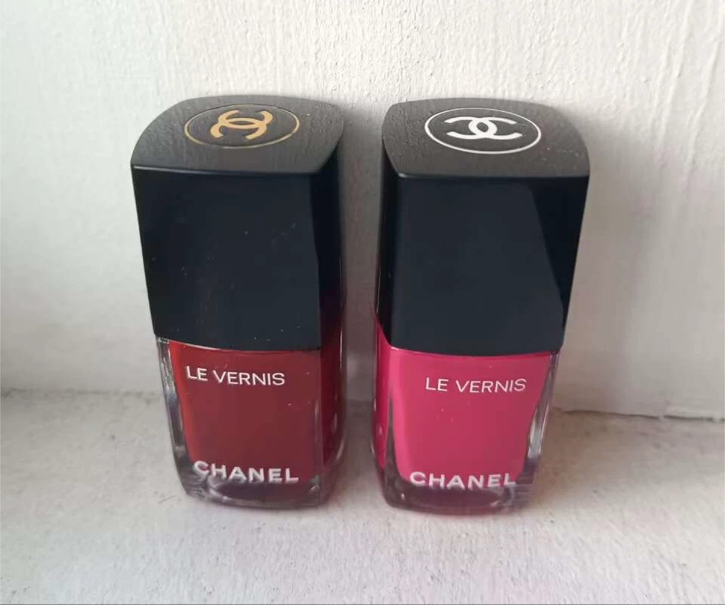 Selling two bottles of Chanel Le Vernis nail polish! One is shade 583 Super Lune (red) and the other is shade 591 Camélia (pink).