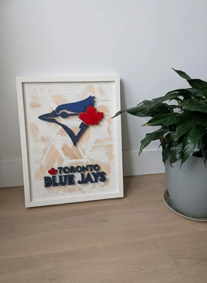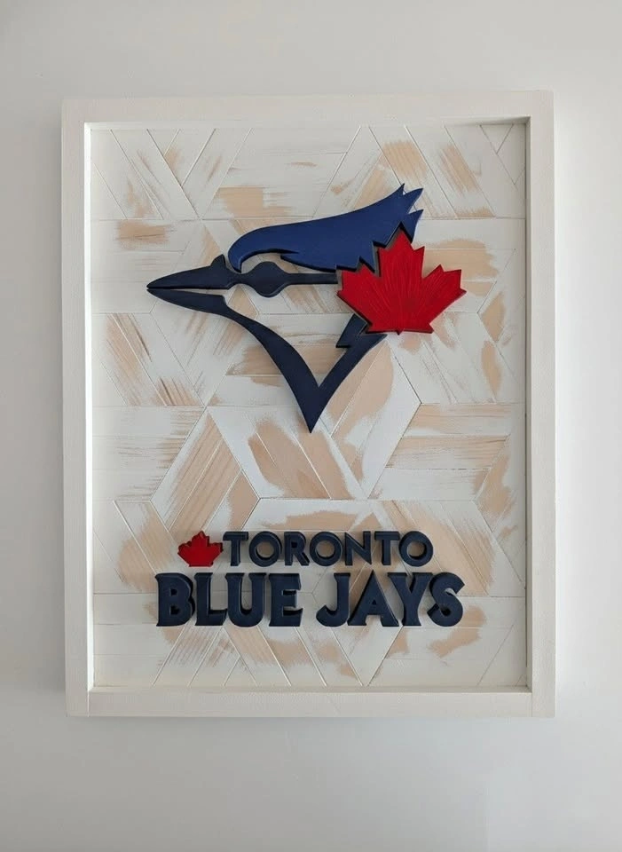 Handmade Wood Mosaic Wall Art - Toronto Blue Jays