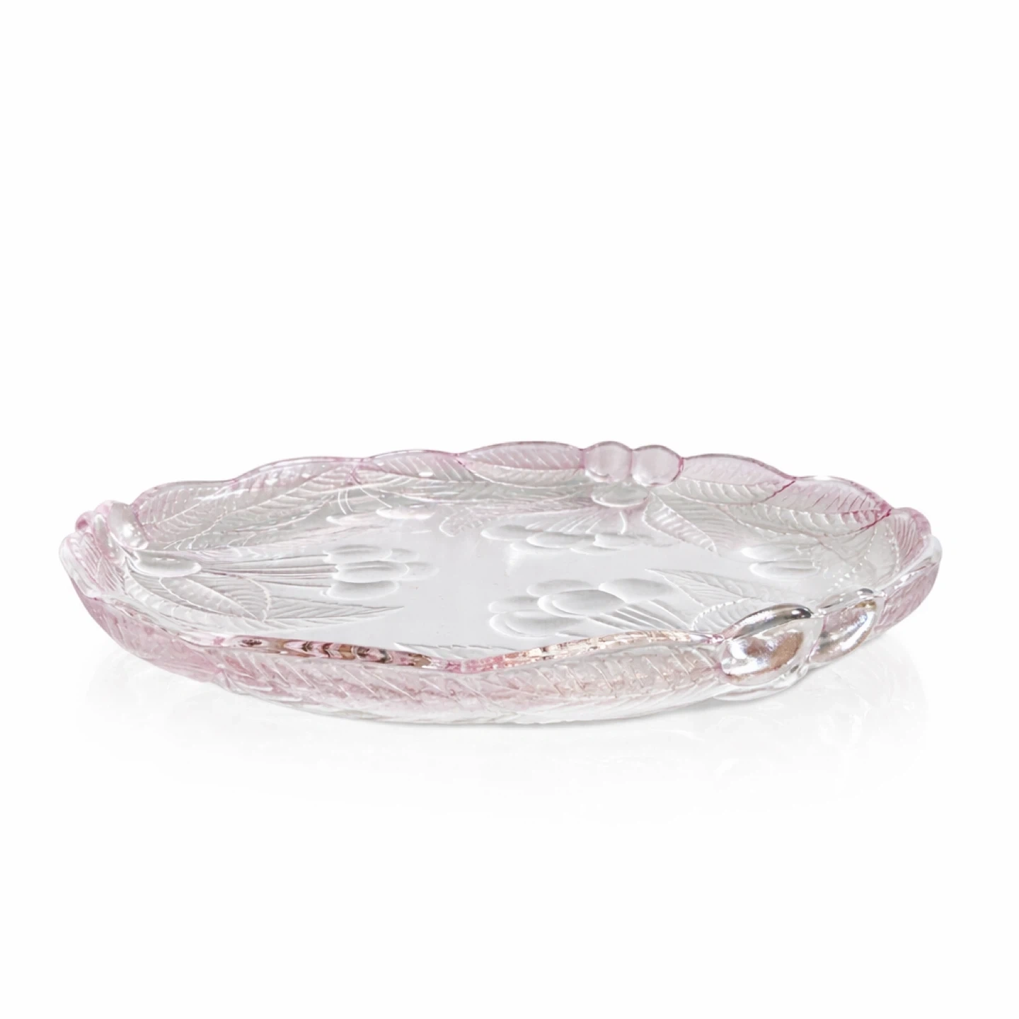 Frosted Cherry & Leaf Crystal Platter, Blush Rim, 12”