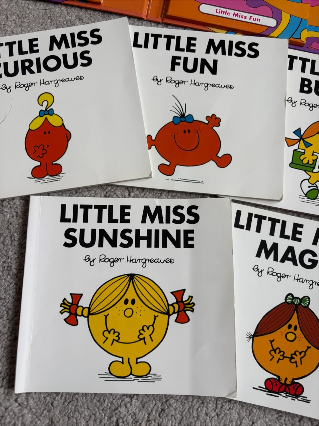 The Mr. Men Show Little Miss 8 mini Book Set. Features Little Miss Curious, Fun, Busy, Chatterbox, Helpful, Sunshine, Magic, and Whoops. Books by Roger Hargreaves. Great for young readers!