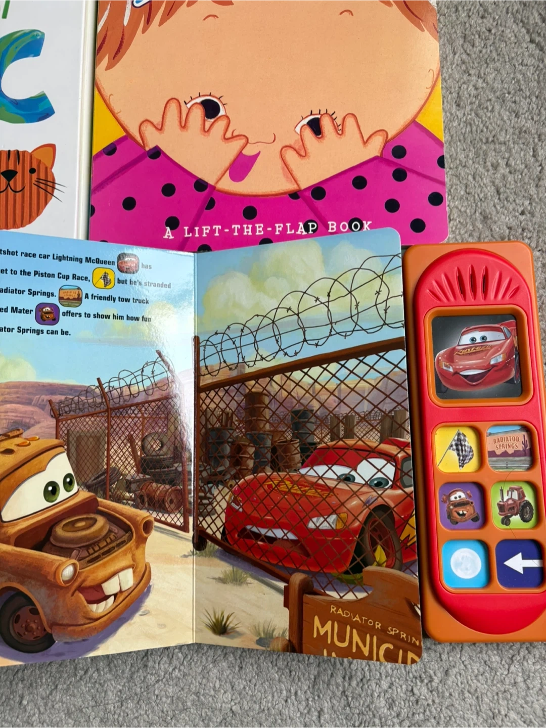 a bundle of toddlers board books/ interactive book (cars have sound ) are perfect for little hands and curious minds. Great for early learning and sensory exploration!
