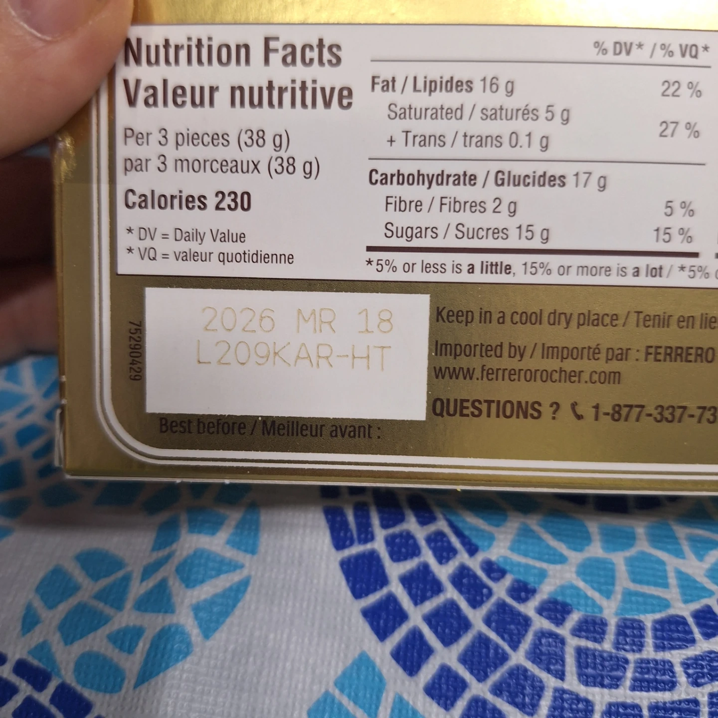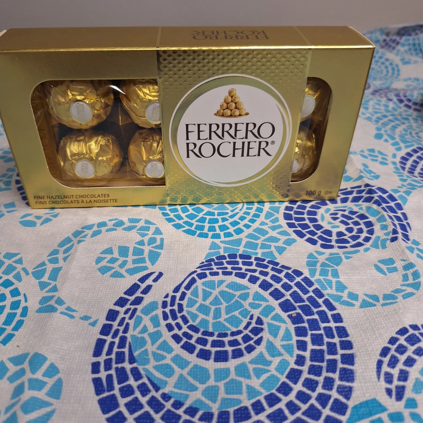 Selling a box of Ferrero Rocher fine hazelnut chocolates. Each chocolate is a whole hazelnut encased in delicious wafer, a creamy filling, and a crisp chocolate layer covered in chopped hazelnuts. Best before 2026 MR 18. Enjoy these decadent treats!