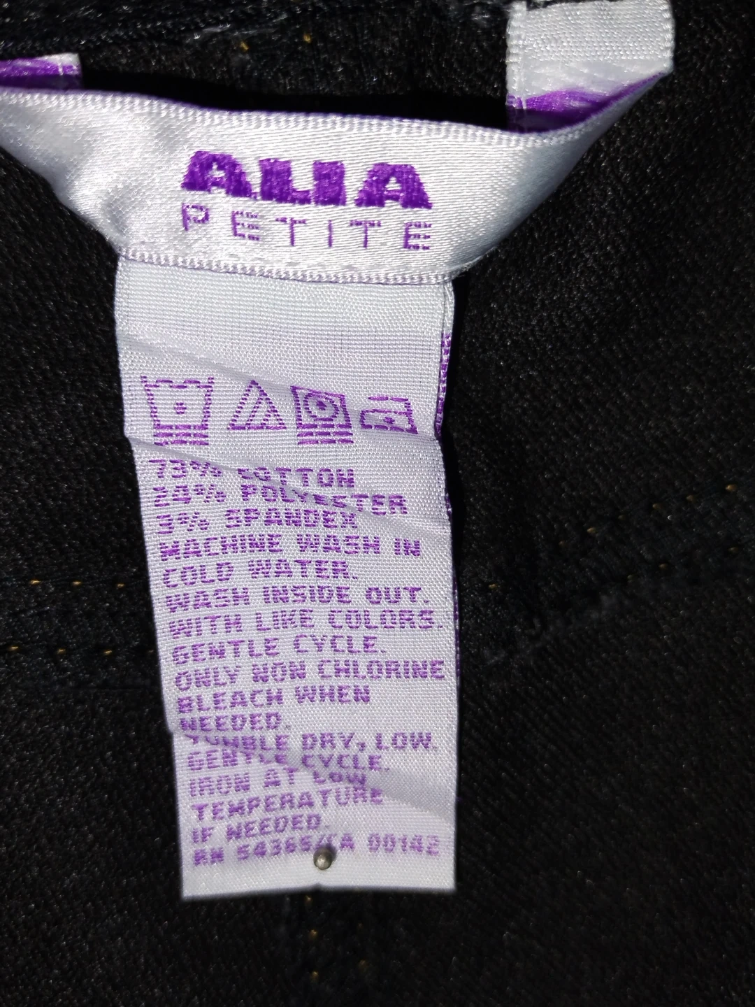 Selling Alia Petite women's black jeans in size 14P. These jeans are made from a comfortable blend of 73% cotton, 24% polyester, and 3% spandex. Easy to care for with machine wash cold instructions. Perfect for everyday wear!