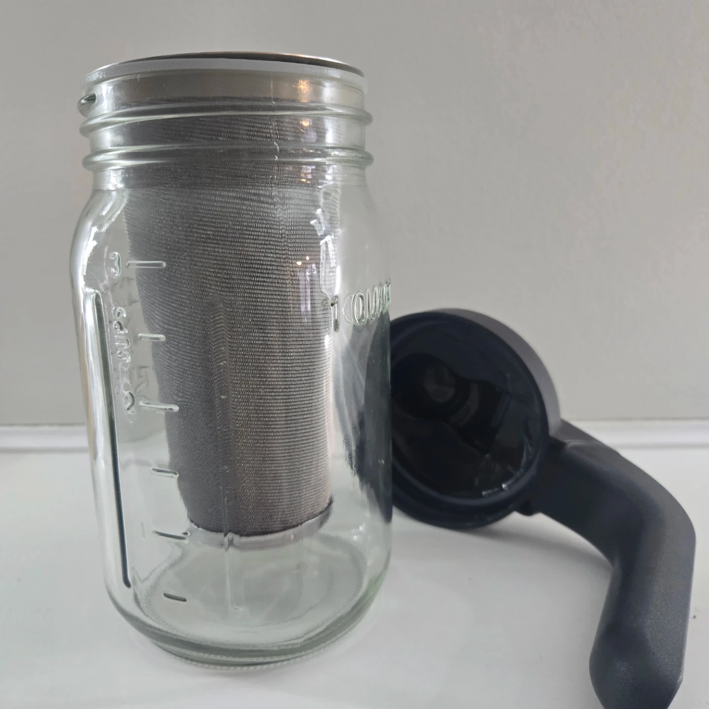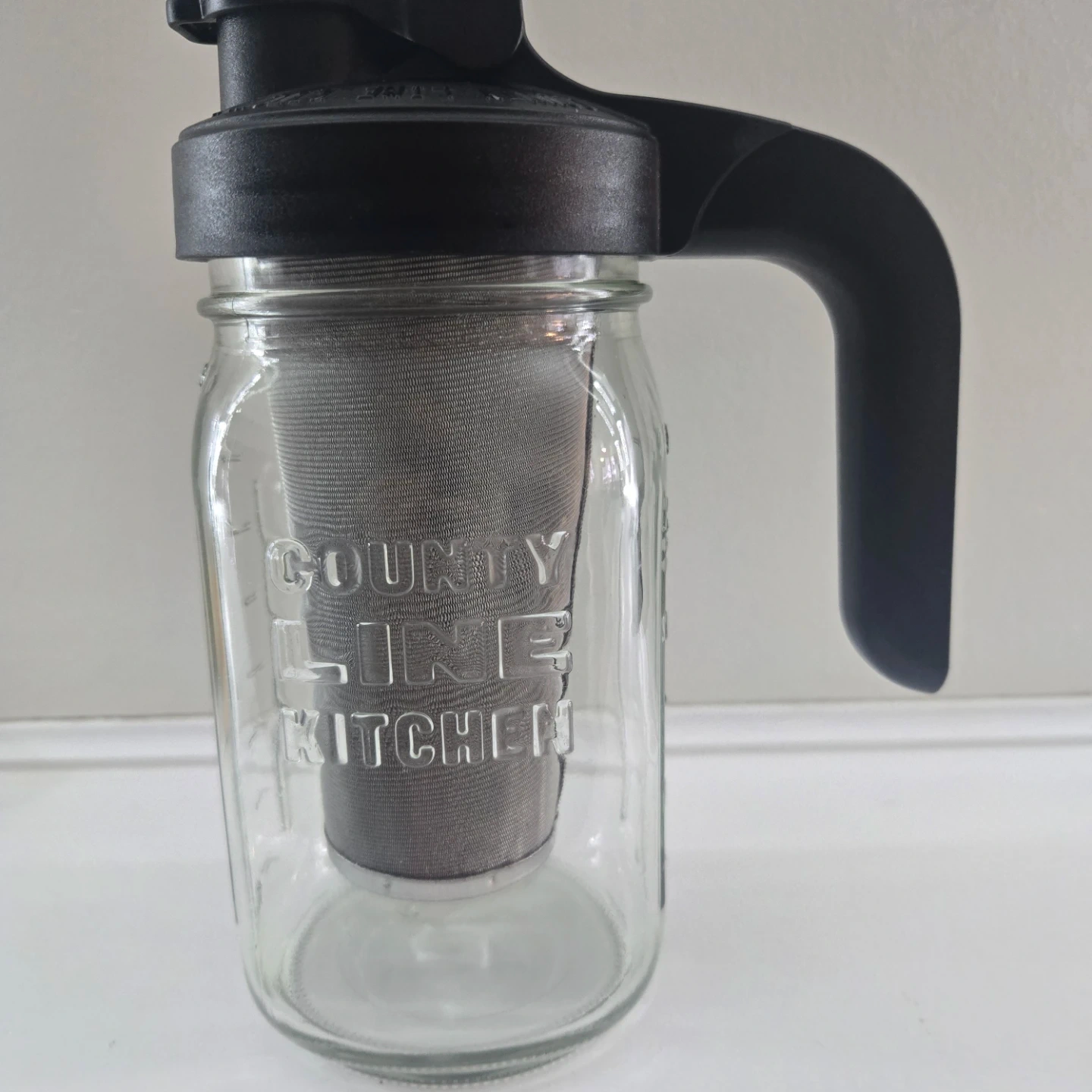 Selling a 1L County Line Kitchen cold brew coffee maker. It's a glass jar with a built-in stainless steel mesh filter and black lid Ready for your next brew! Purchased in July 2025, so gently used. No issues with it, just decided to switch to a different method for brewing. 🙂