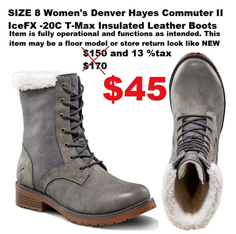 Selling Denver Hayes Commuter II leather boots with ICEFX outsole technology for safer walking on ice. Featuring T-MAX Insulation for maximum warmth and superior comfort, rated for -20C. These boots have a faux sherpa-lined collar that can be worn up or folded down for two looks. Waterproof leather & suede upper. EVA insole/midsole. Size 8 available. These boots look like new and are fully operational.
