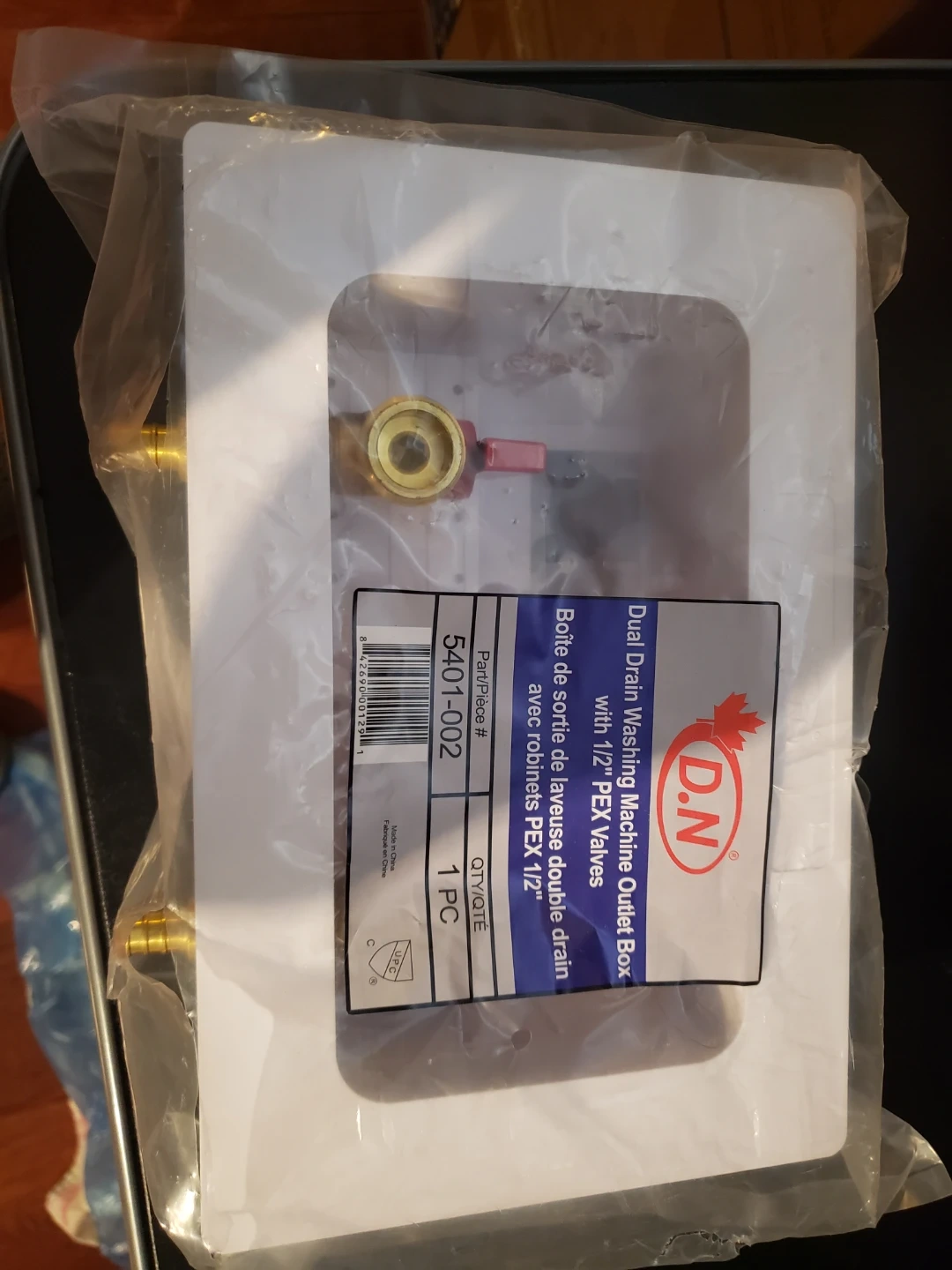 Washing Machine Outlet Box with 1/2" PEX Valves. This box includes a double drain and PEX valves for easy installation. It's a great solution for your laundry room setup!
