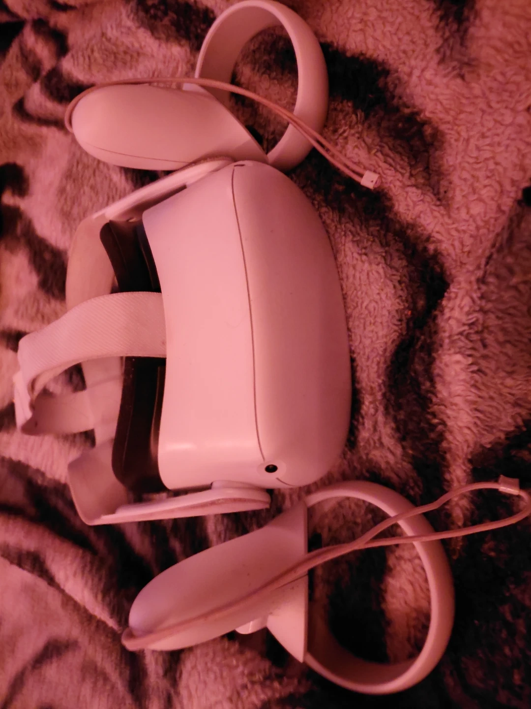 Selling a Meta Quest 2 virtual reality headset and its controllers.