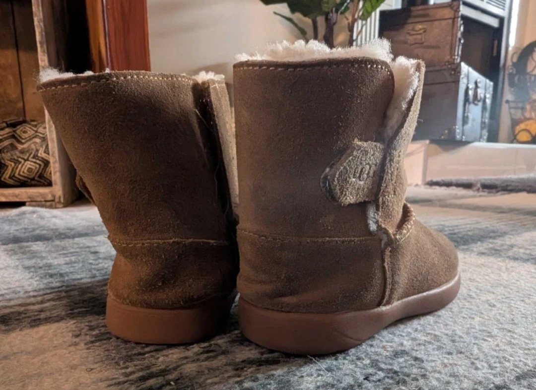 Selling a pair of UGG Australia brown suede boots with cozy sheepskin lining. Toddler size 7. Perfect for keeping little feet warm this season!