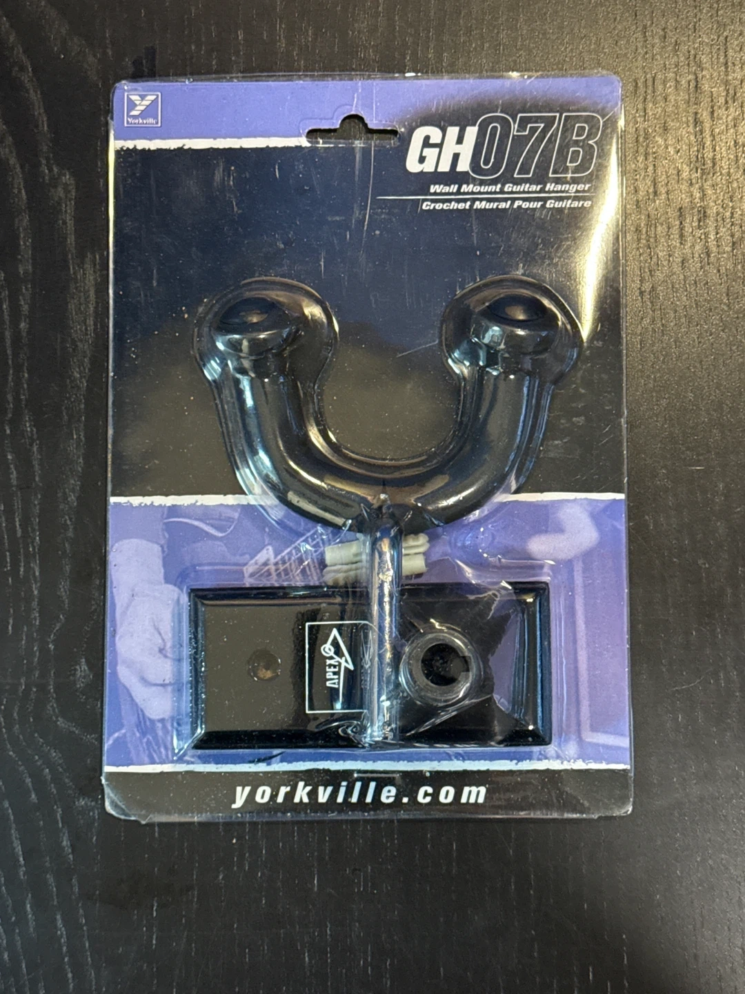Selling a Yorkville GH07B wall mount guitar hanger. This hanger is designed for securely displaying your guitar on a wall. It comes in its original packaging with all necessary mounting hardware. A great way to keep your guitar accessible and safe!