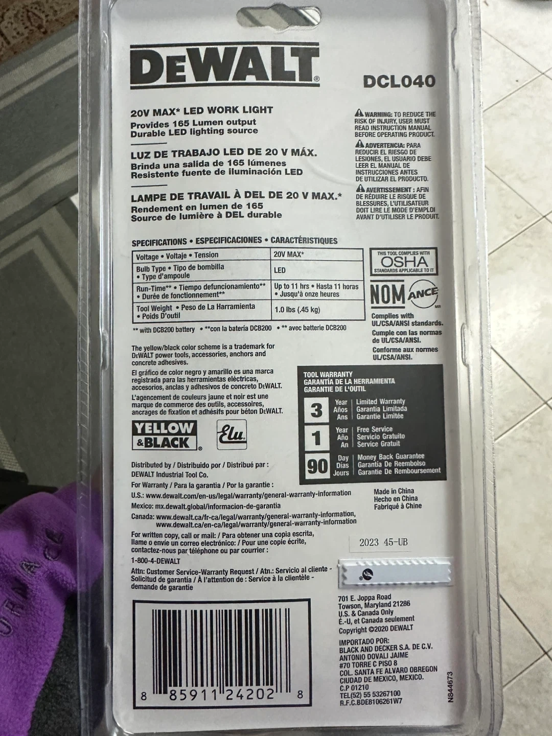 Selling a DEWALT 20V MAX LED work light. Provides 165 lumens of light. Up to 11 hours of runtime. Includes original packaging.