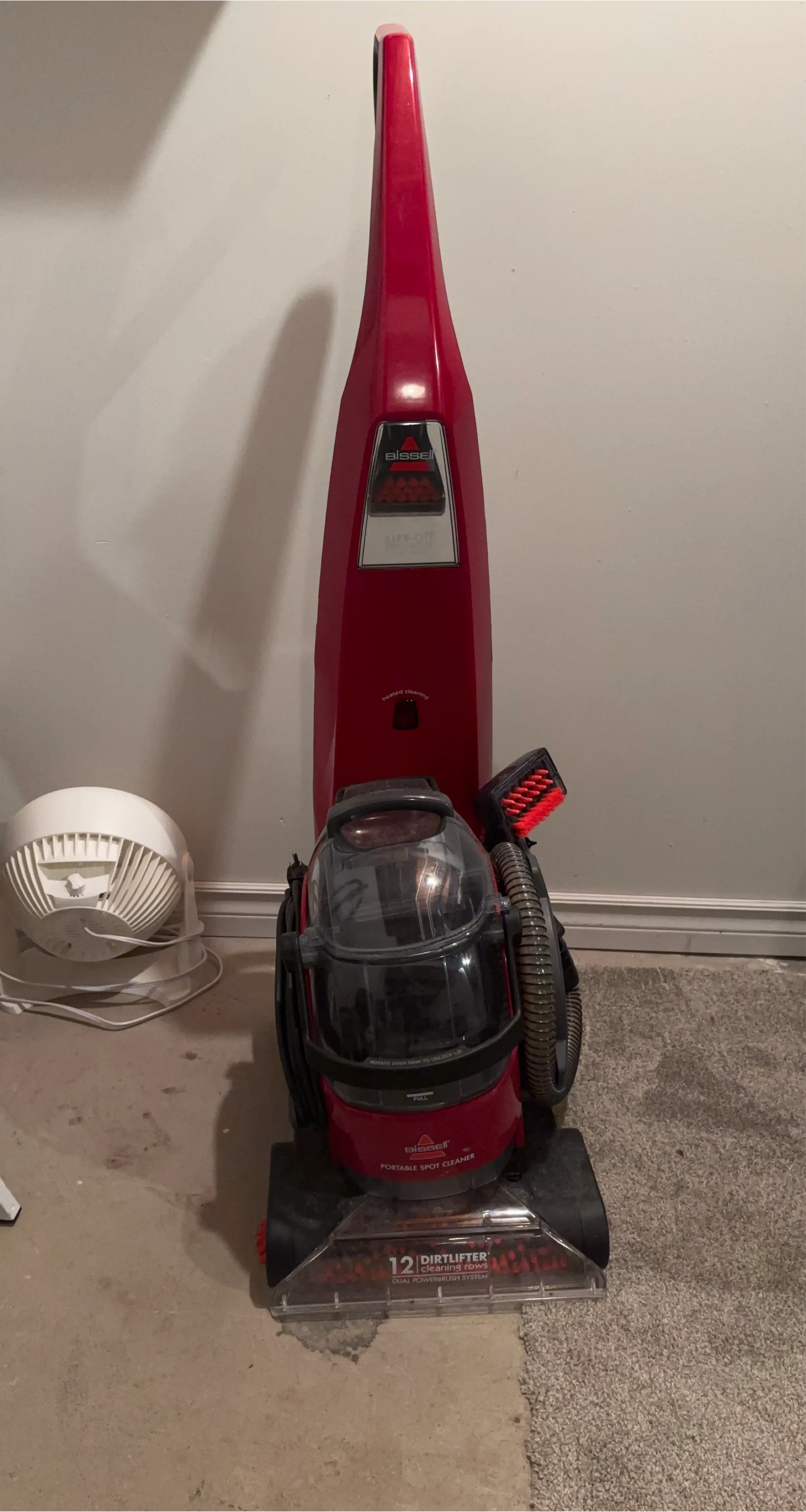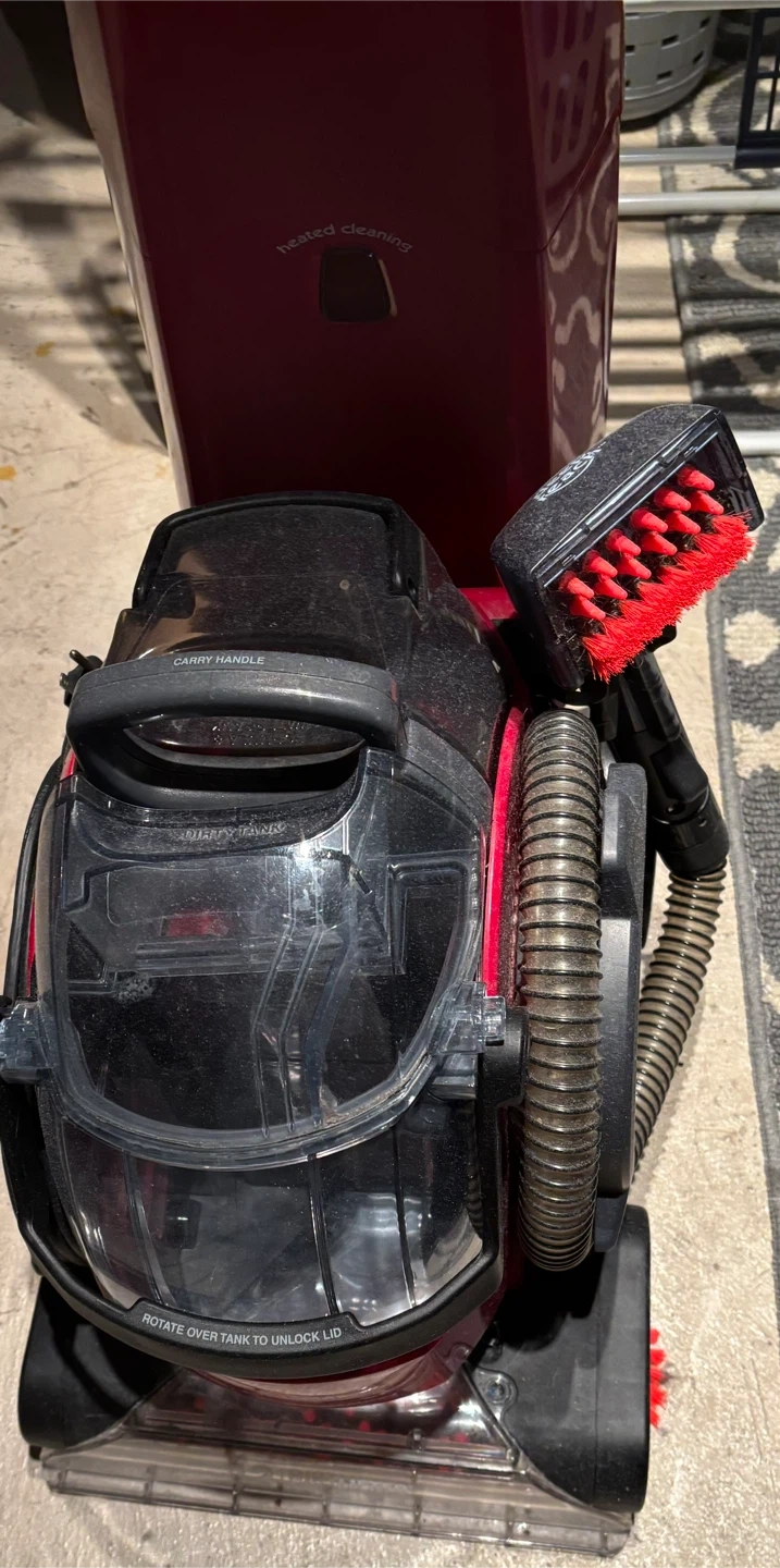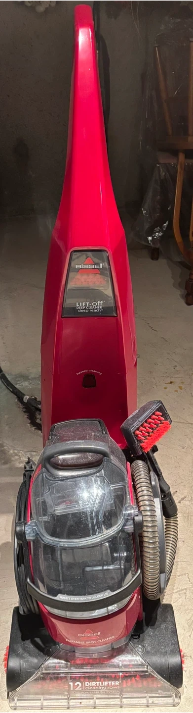 Selling a red Bissell Lift-Off Deep Cleaner. This portable spot cleaner features "Lift-Off" technology for deep cleaning and "Deep Reach". Includes heated cleaning and "DirtLifter" power brush. Great for tackling tough messes!