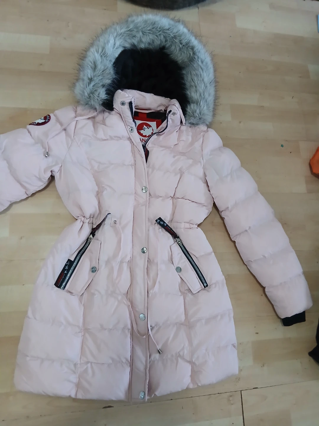 Selling a warm pink puffer coat from Canada Weather Gear. It features a stylish faux fur trimmed hood and a cinched waist for a flattering fit. Perfect for staying cozy during colder months! Bought for $300 never worn!