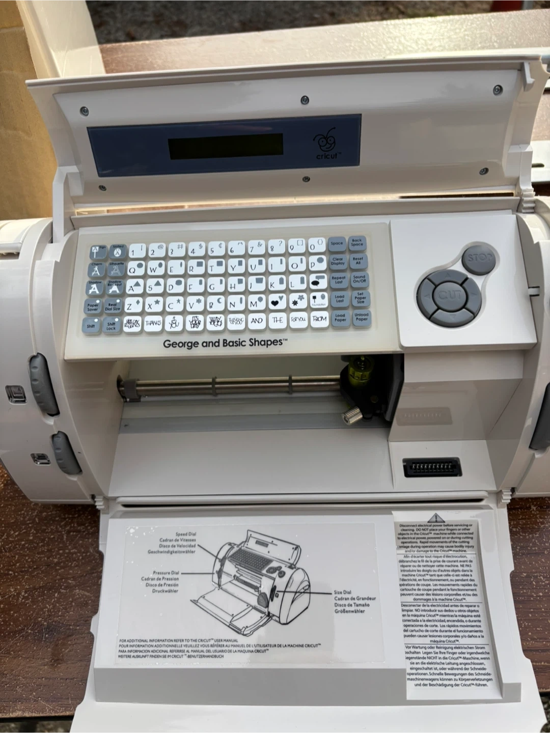 Selling a Cricut George & Basic Shapes personal electronic cutter. This unit comes with a Cricut Sampler pack and power cord.