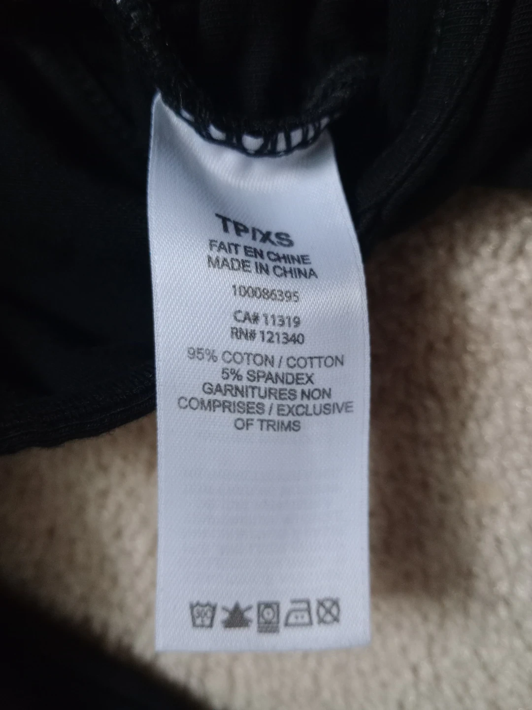 Selling a black long sleeve crop top from Garage-XS. It's made with 95% cotton and 5% spandex for a comfy fit. Features a stylish square neckline and a tie-back detail. Great for layering or wearing on its own!