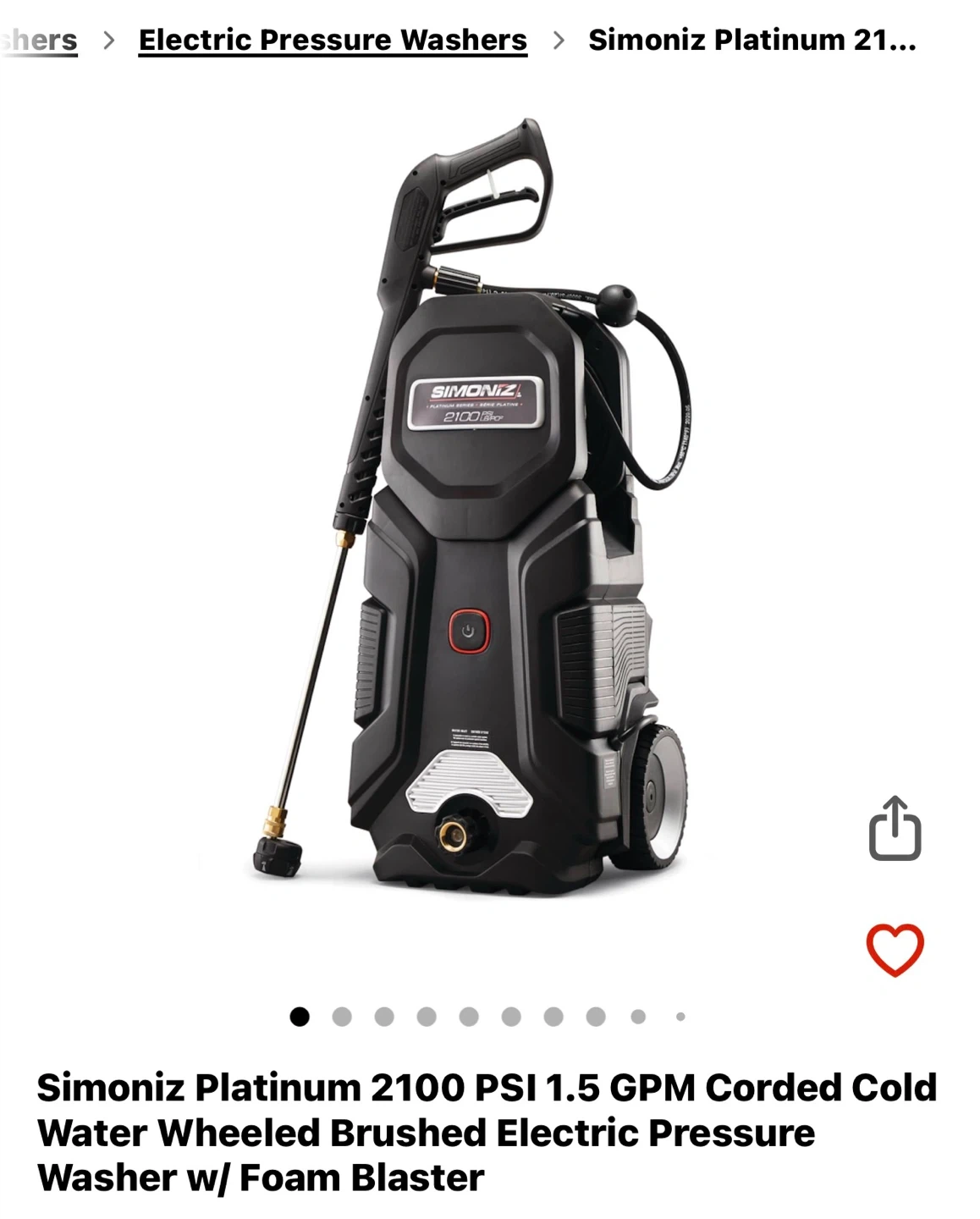 Buy & SellSimoniz Platinum 2100 PSI Corded Electric Pressure WasherSimoniz Platinum 2100 PSI Corded Electric Pressure Washer$90All are new and many moreConditionNewWHERE TO MEETCheck LocationView MapSELLERusmanNW Sandalwood Pkwy141 review2 chats·2 favorites·32 viewsSEND CHAT TO SELLERHi usman! I’m interested in your listing.Hi usman! I’m interested in your listing.Get the Karrot app to chatSign In to chat