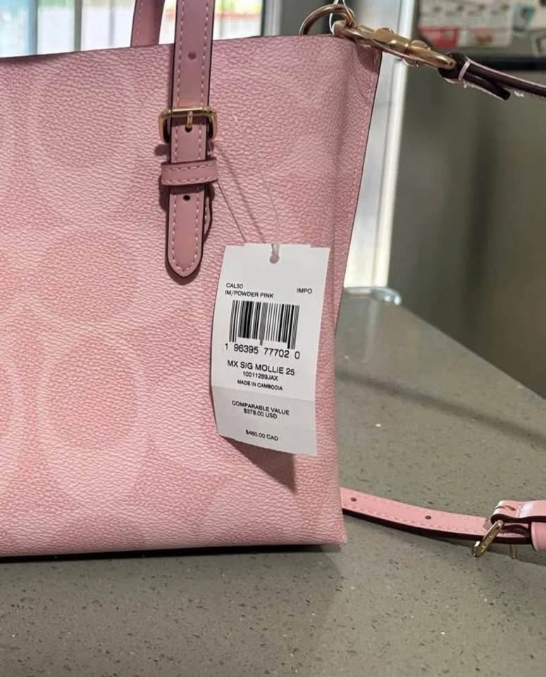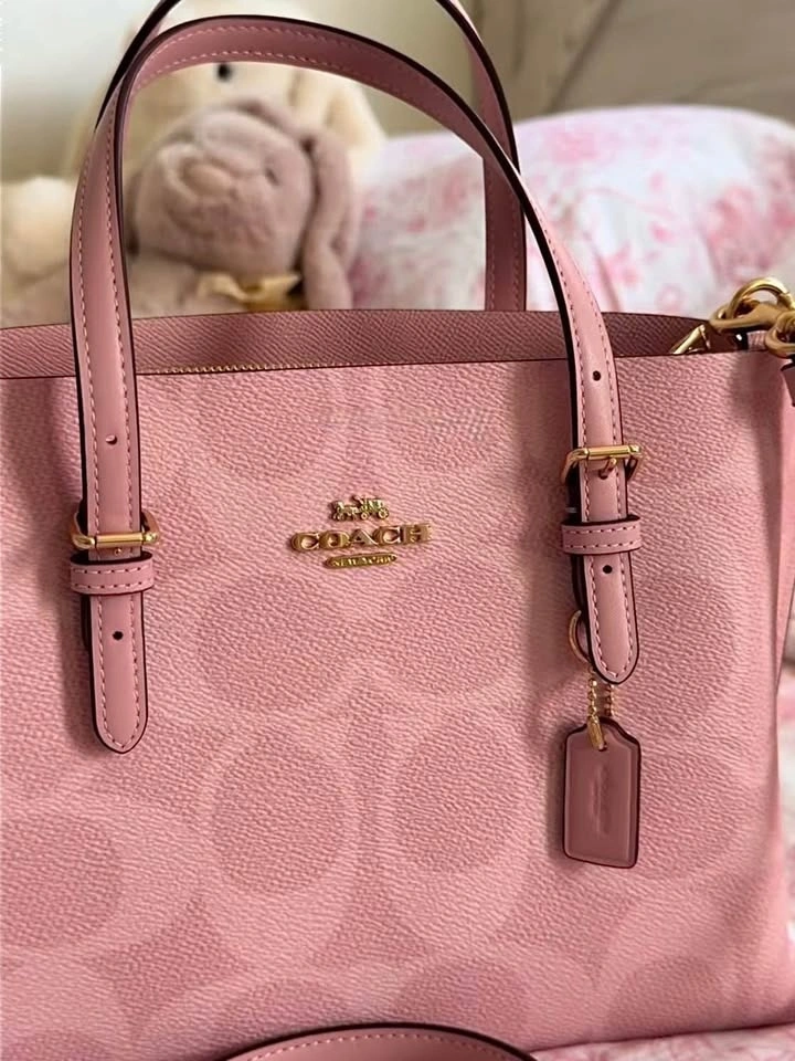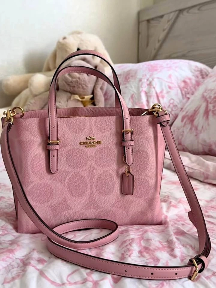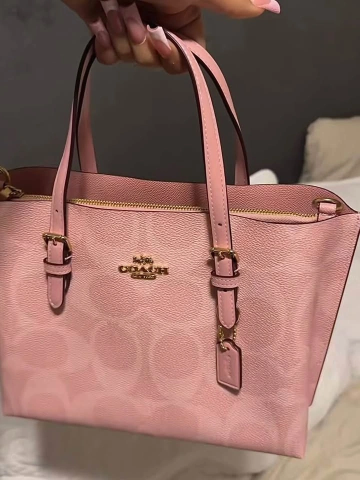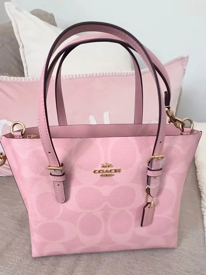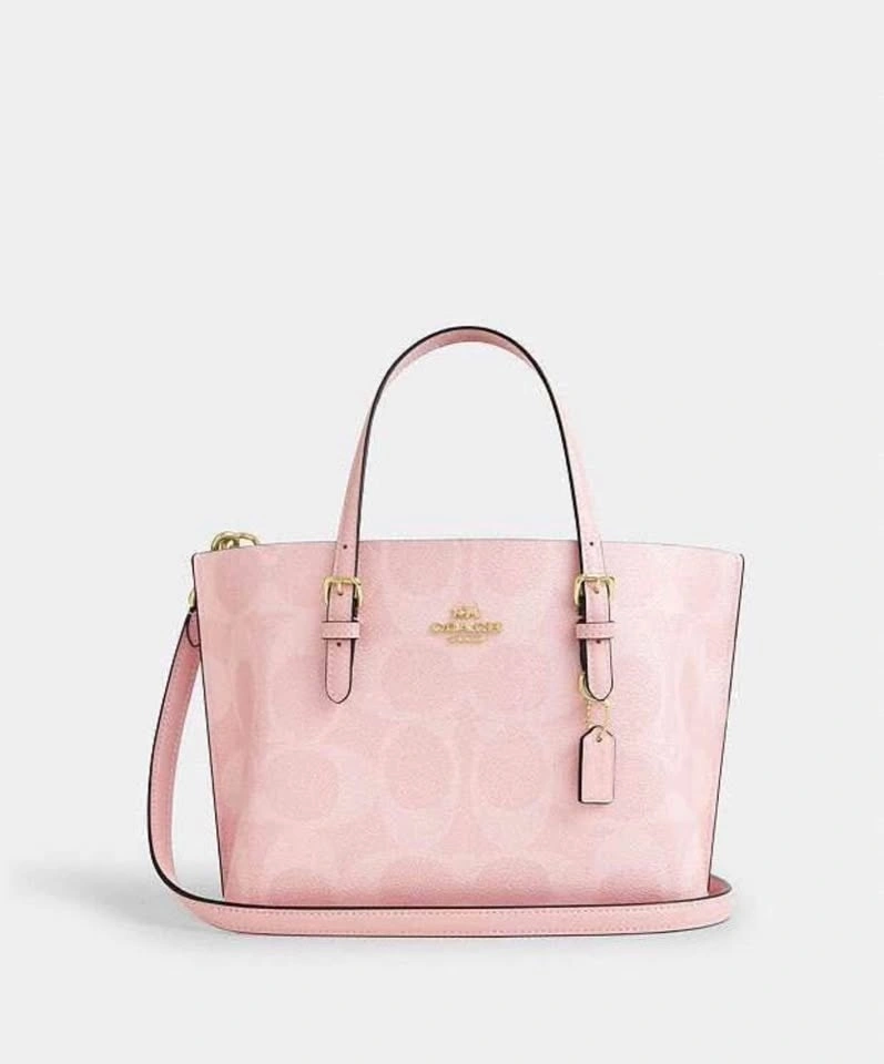 New Coach Mollie 25 Tote Bag in powder pink. This is a discontinued and sold-out color. Original price was $460. Comes with a long crossbody strap.