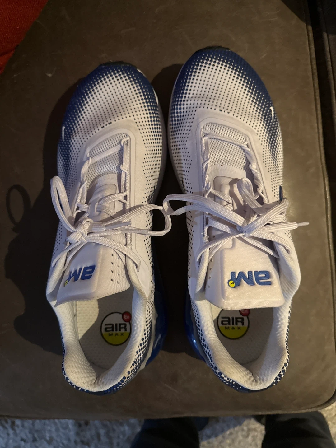 Men’s size 10 Running shoes, Blue & White, worn 3 times have box and payment receipt, purchased in December. Love them but the fit isn’t right for me. Retail price $190, selling for $80 firm to buy different shoes!