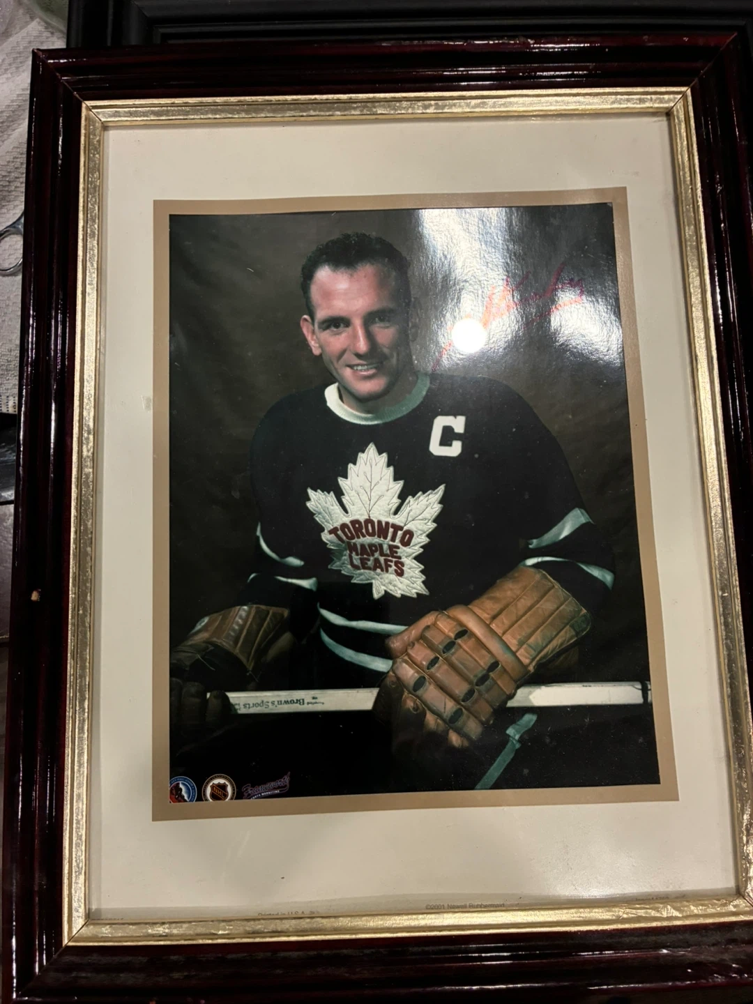 Selling a framed photograph of Toronto Maple Leafs legend Teeder Kennedy. This item features his autograph, authenticated by Hammertime Sports Card. It was presented at an event on June 12, 2004. A great piece for any hockey fan!