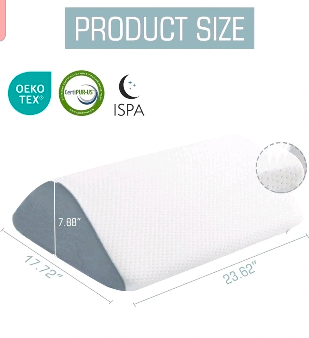 Dimensions are 23.62" x 17.72" x 7.88". Perfect for adding comfort to your bed!