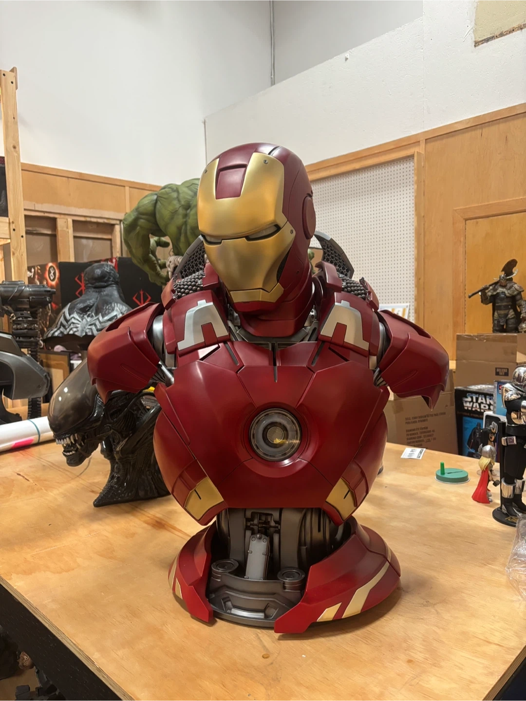 Amazing life size Iron Man Mark VII bust statue with detachable light arc reactor.
