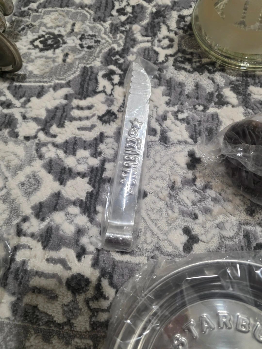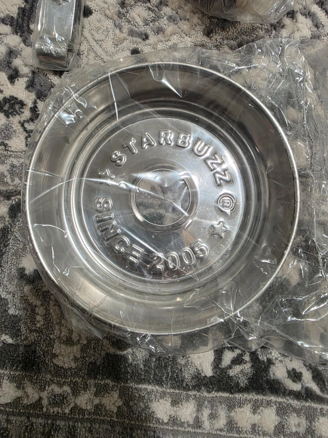 This is a Starbuzz hookah set. It includes the glass base, metal stem, bowl, hose, and charcoal tongs. All components appear to be present.