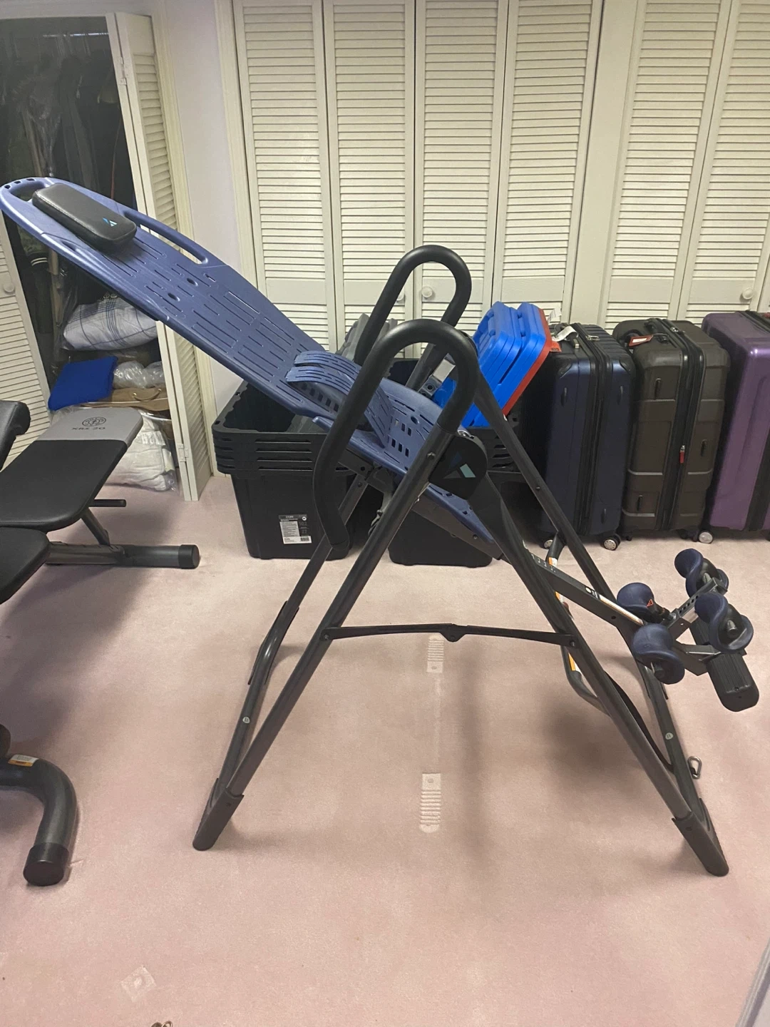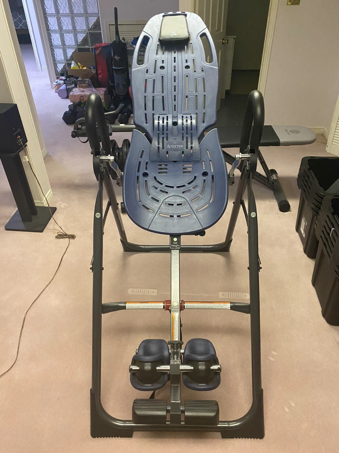 This Teeter inversion table offers a comfortable way to decompress. It's designed for easy use and has adjustable ankle supports. This is a great piece of equipment for at-home relief!