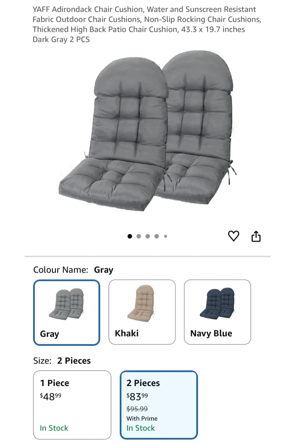 Yaff High Back Patio Chair Cushions - Dark Gray (2 PCS)