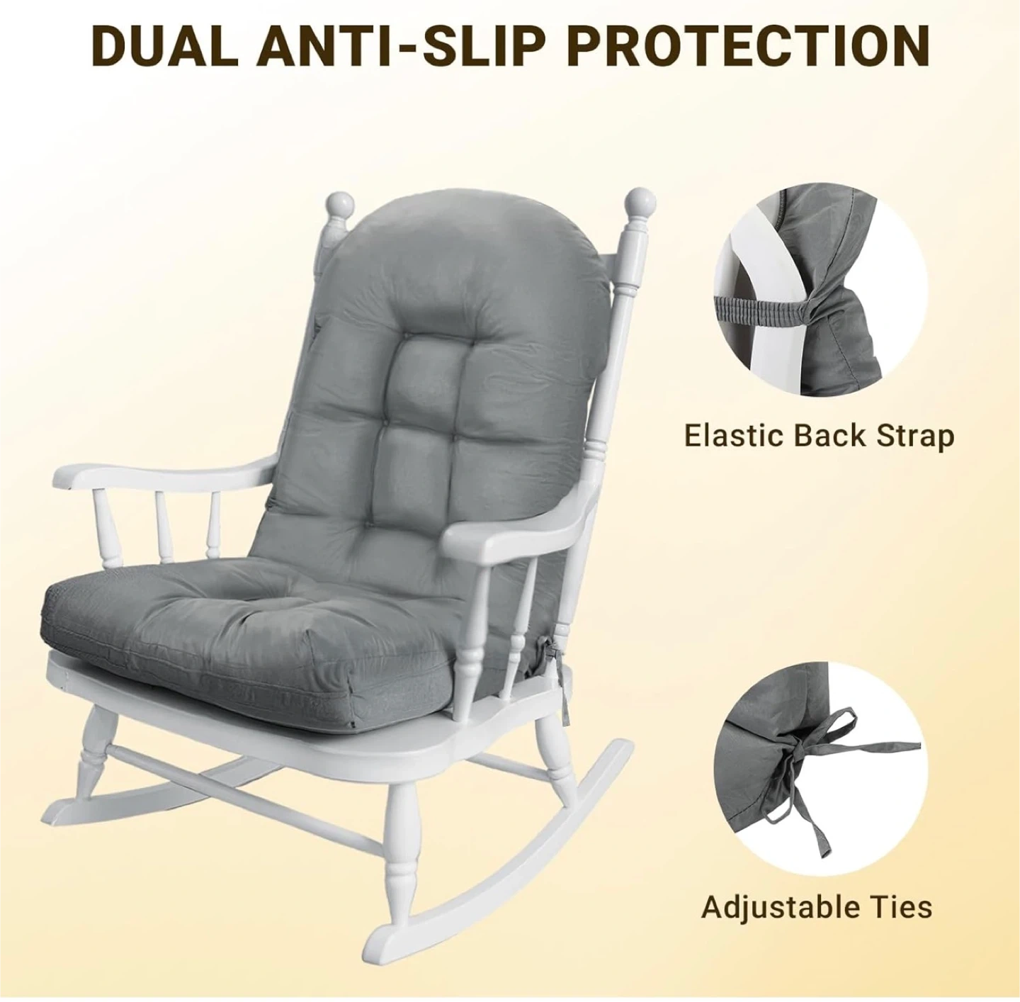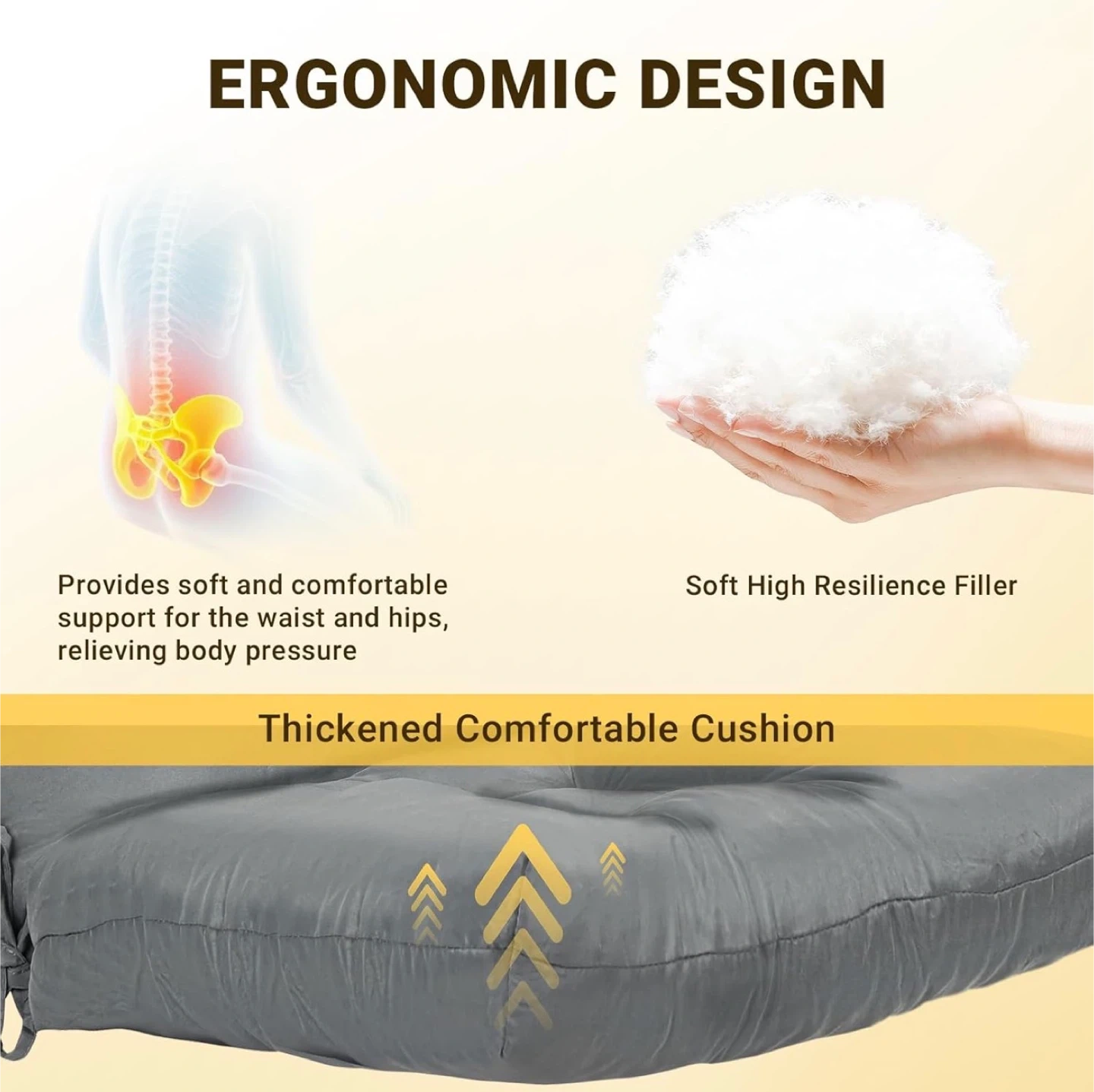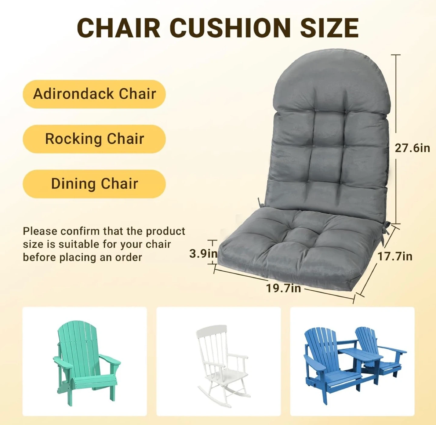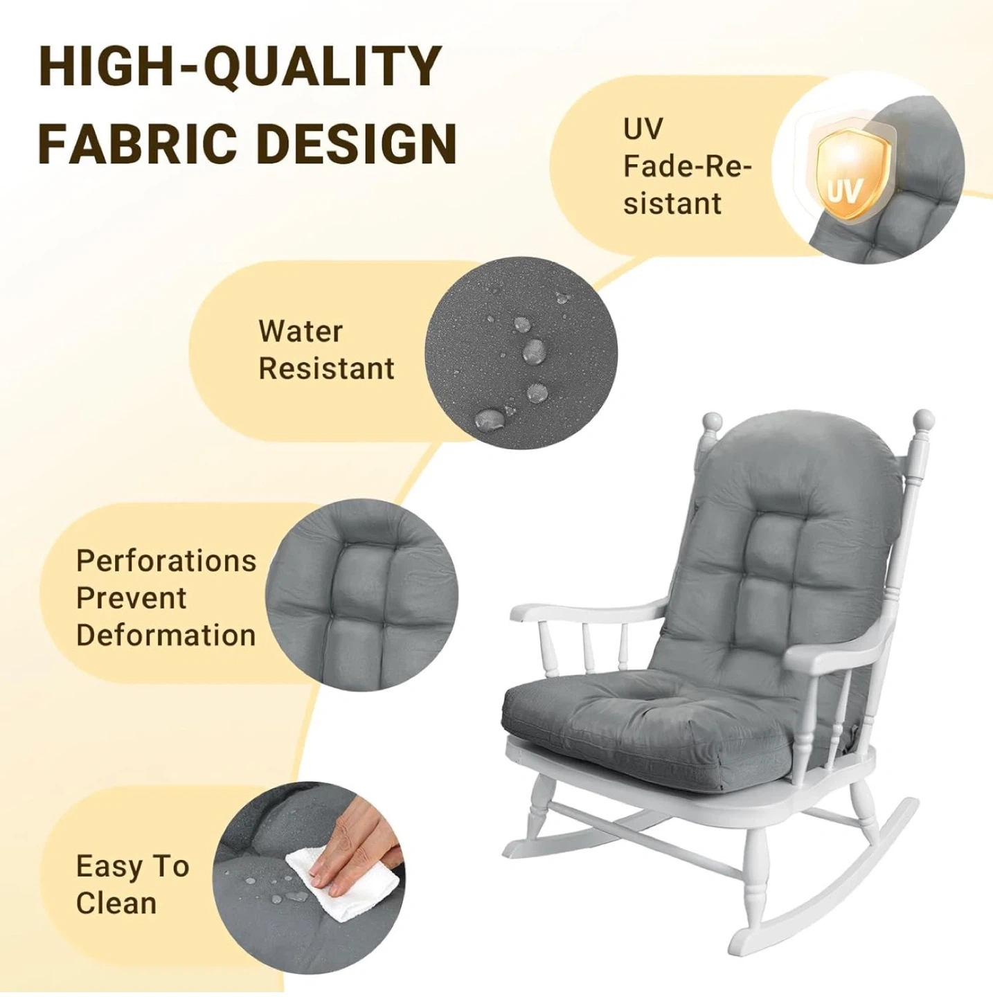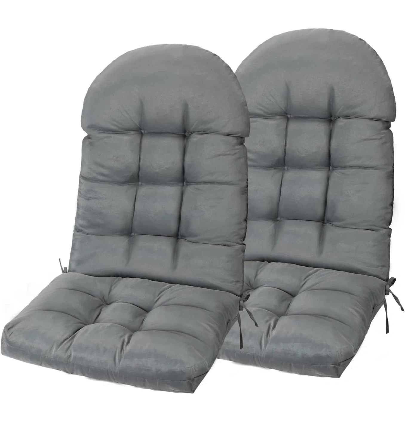 This set includes two high-back chair cushions in dark gray. They're made with a thickened design and feature upgraded filling with 50% high-density foam and 50% virgin PP cotton. The fabric is UV fade-resistant and water-resistant, making them suitable for outdoor use. These cushions offer high resilience and comfortable support.