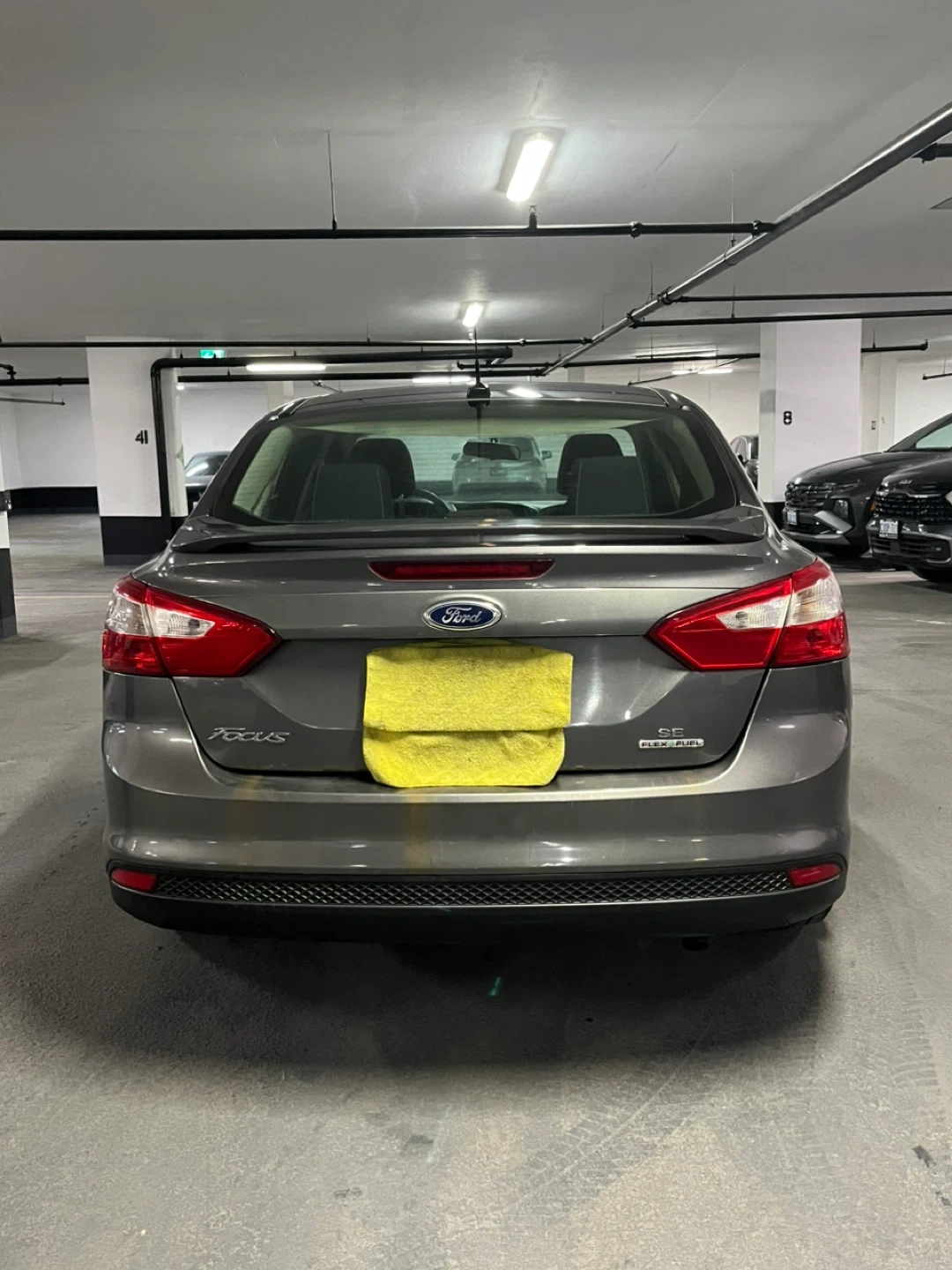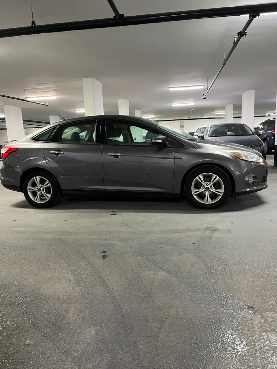 This is a grey 2013 Ford Focus SE sedan. It's a four-door model. Great for commuting or as a first car!