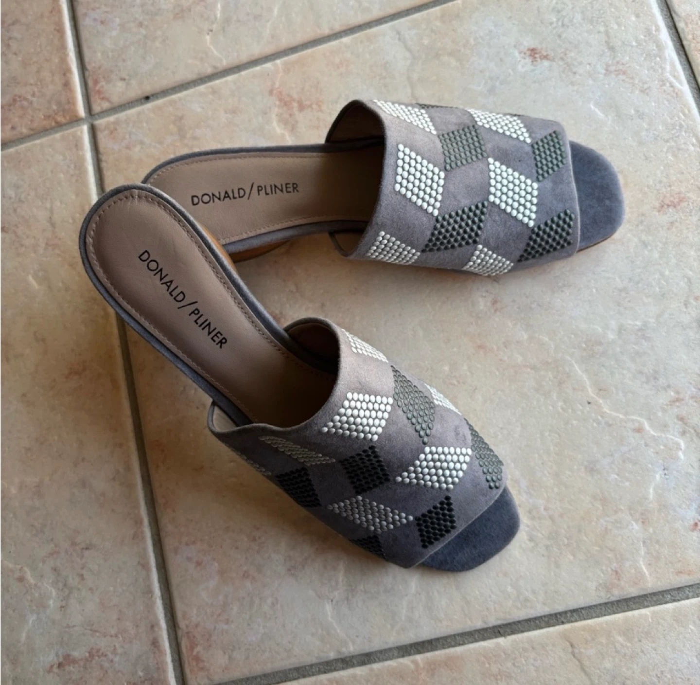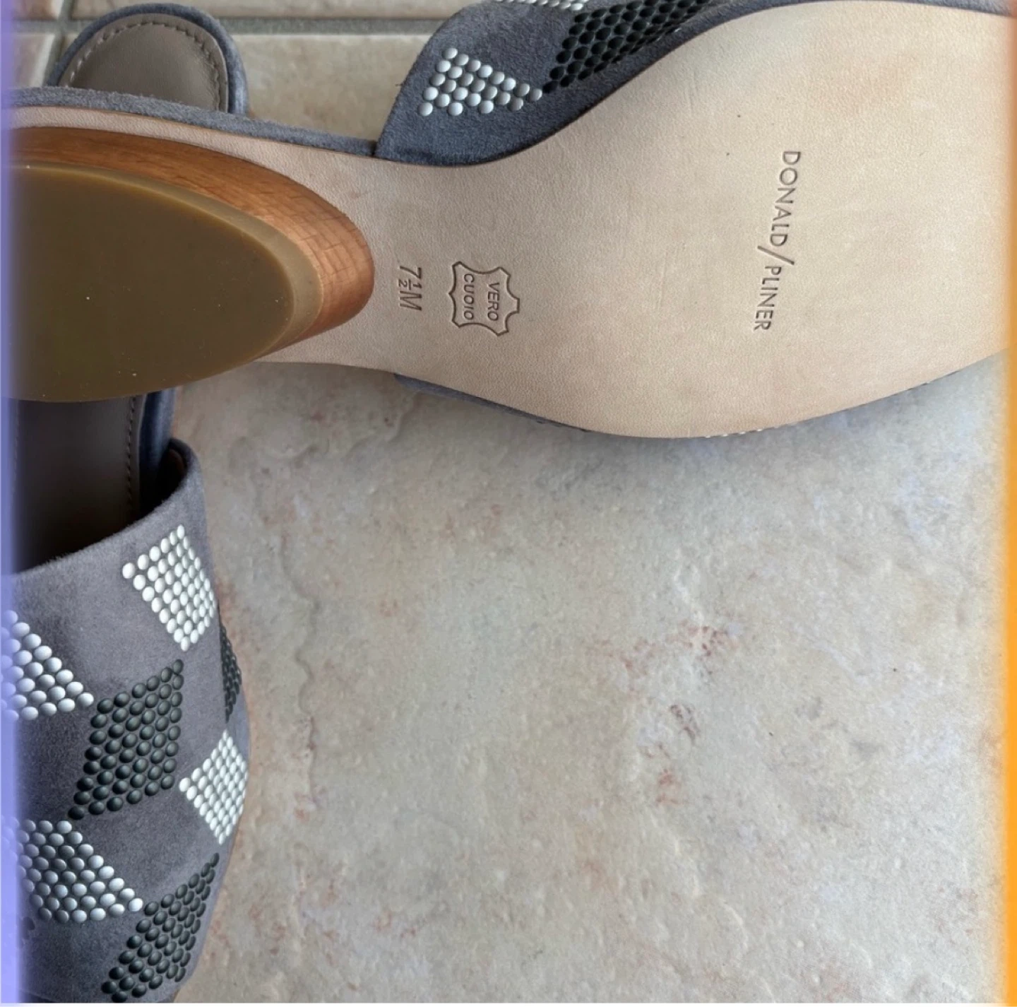 Buy & SellDonald Pliner Grey Suede Studded Mules Size 7.5MDonald Pliner Grey Suede Studded Mules Size 7.5M$90Grey suede slide mules with a studded diamond pattern. Leather sole.ConditionNewSize7.5BrandDonald PlinerWHERE TO MEETCheck LocationView MapSELLERMinaThornhill210 reviews0 chats·0 favorites·5 viewsSEND CHAT TO SELLERHi Mina! I’m interested in your listing.Hi Mina! I’m interested in your listing.Get the Karrot app to chatSign In to chat