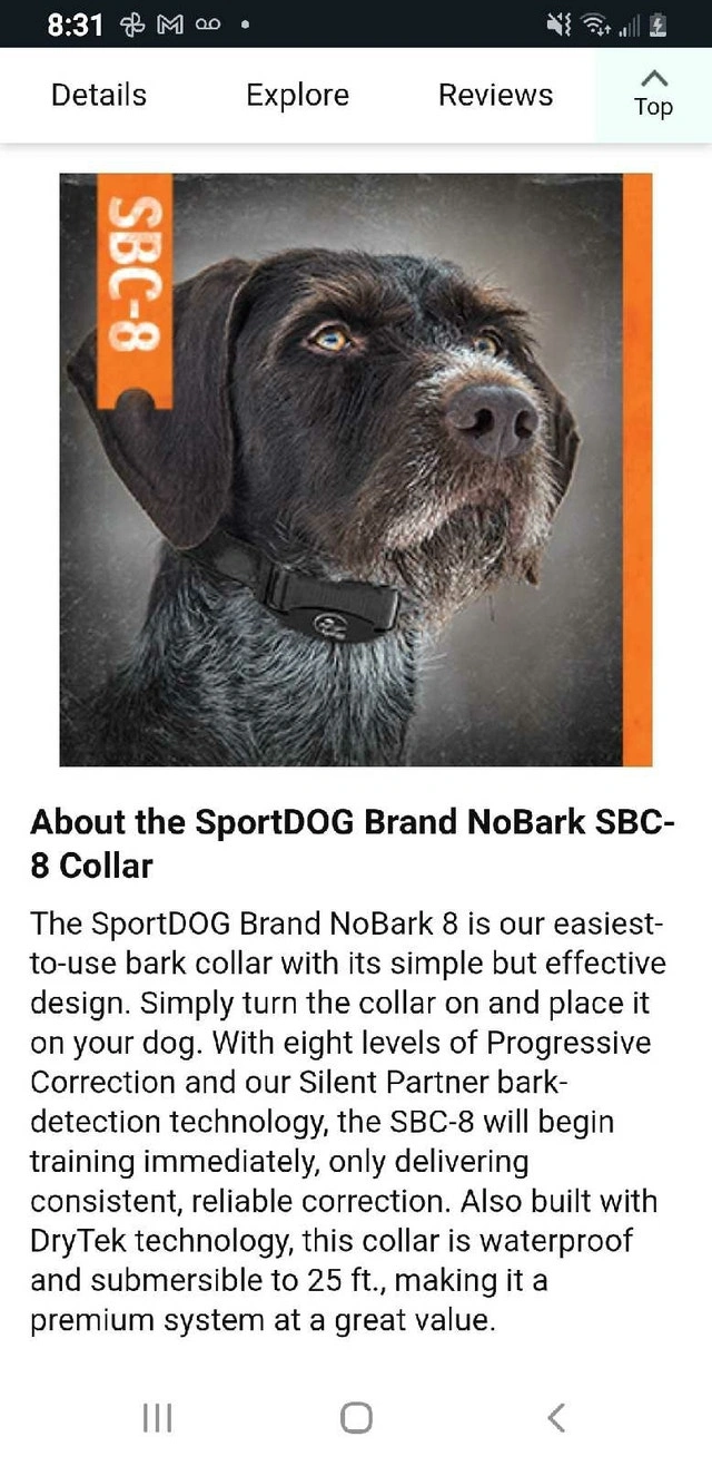 SportDOG SBC-8 NoBark Collar BRAND NEW