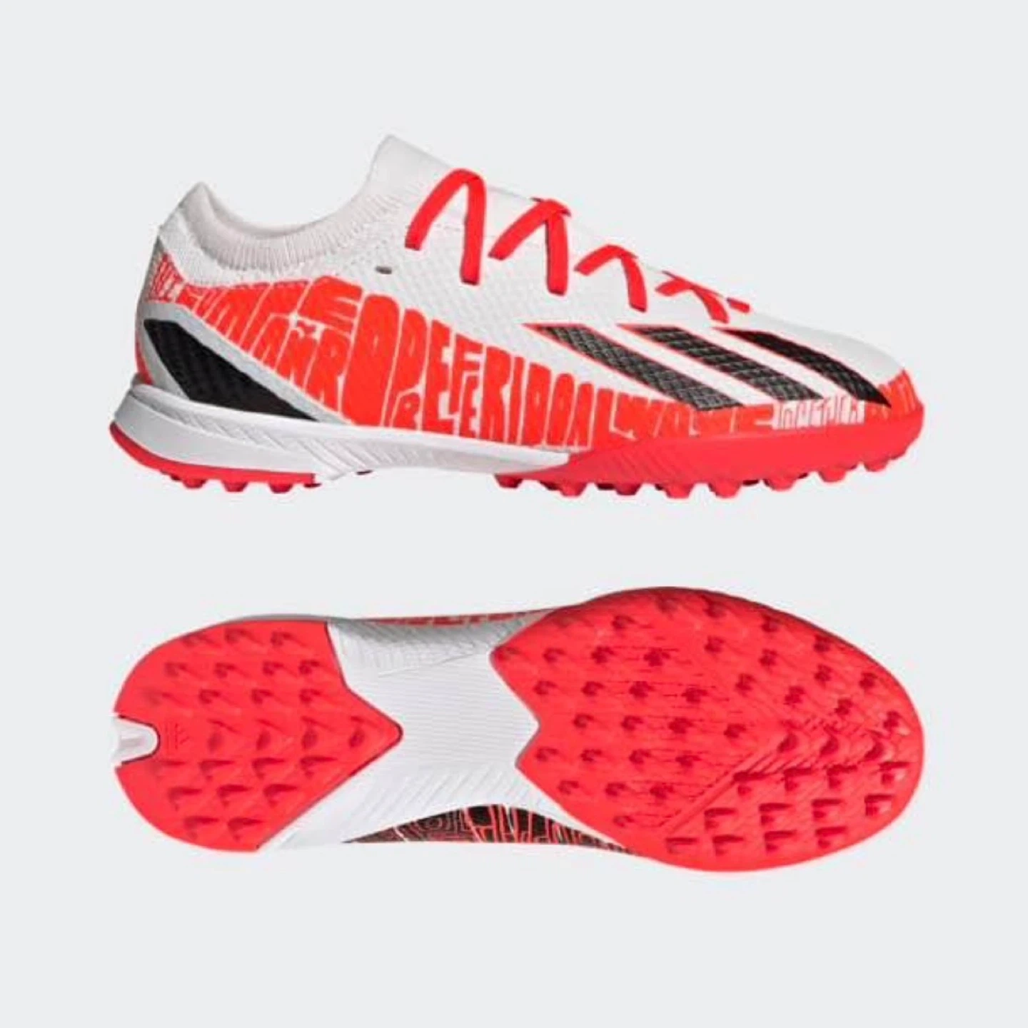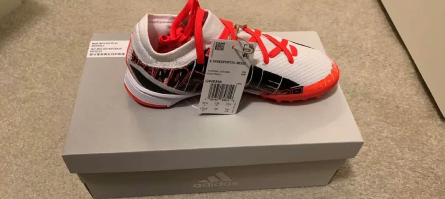 These Adidas X Speedportal Messi football cleats are designed for the turf. They feature a white and red colourway with black accents. They come with original packaging. Get ready to play!