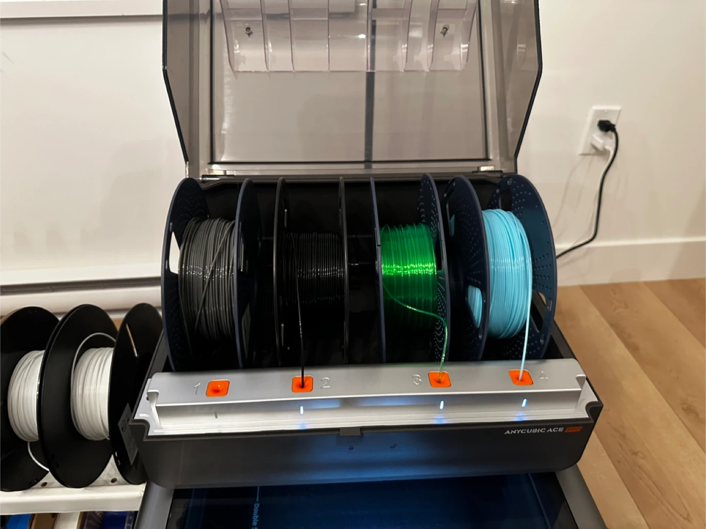 Just got a bigger printer so this one is now up for sale, has 200 hours (low hours) and Has 18 rolls of filament from PLA to TPU, ASA and PETG and much more.