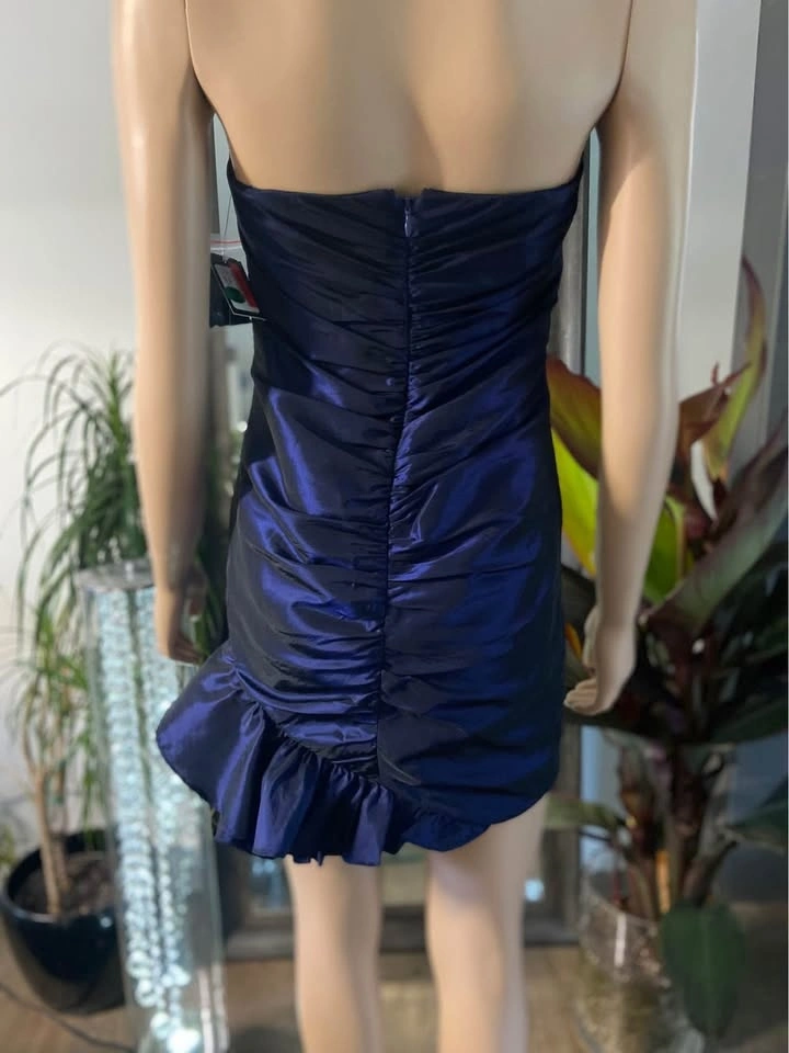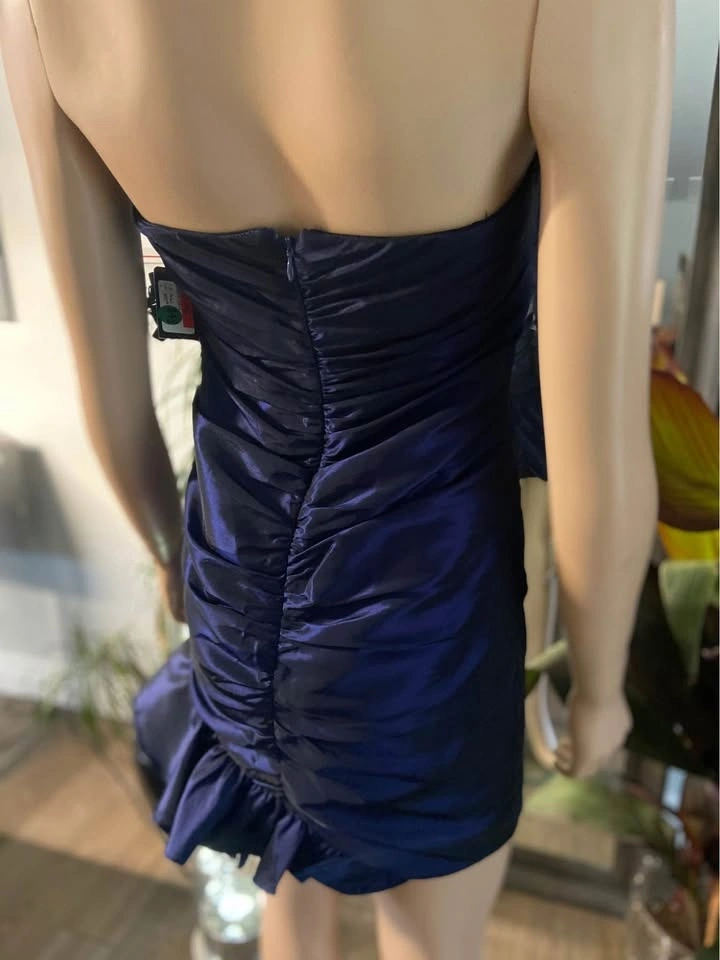 NWT: Laundry Blue Ruched Ruffled Front Convertible Strap Satin Cocktail Evening Dress Sz 2, 4, 8, 10