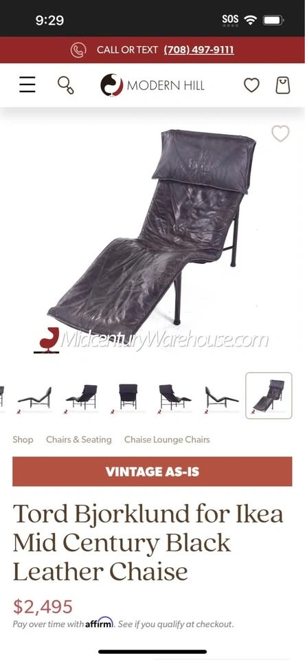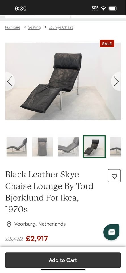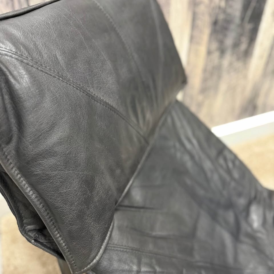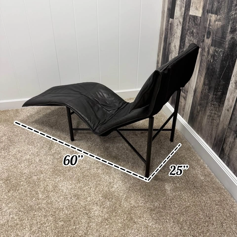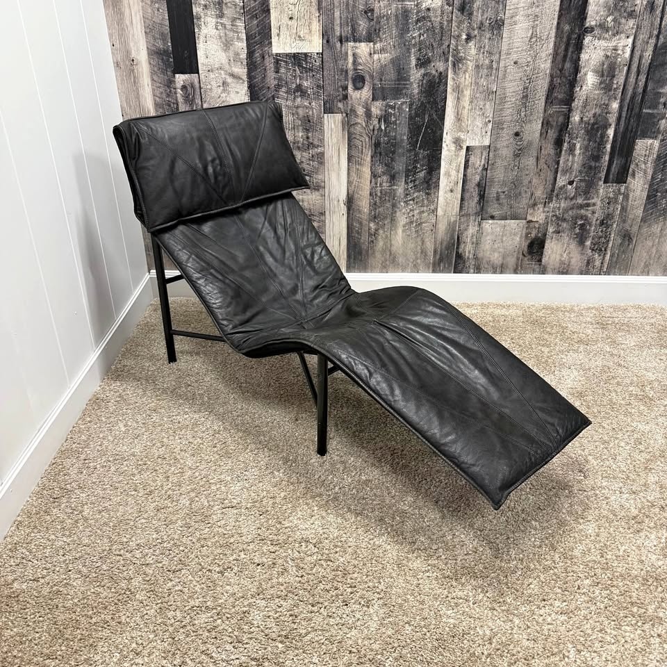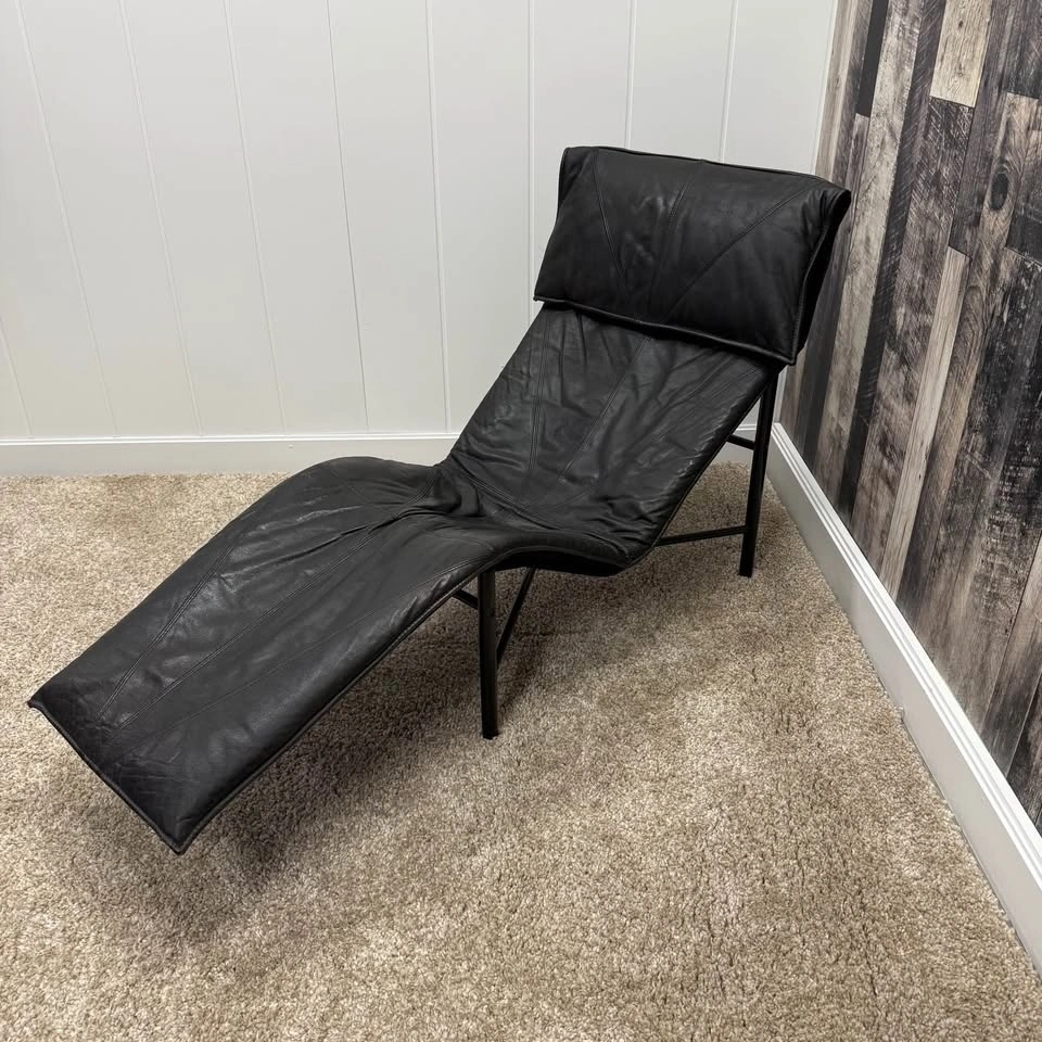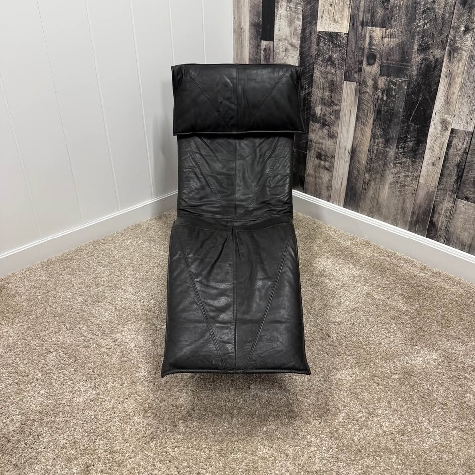 1970s IKEA Black Leather Skye Chaise Lounge