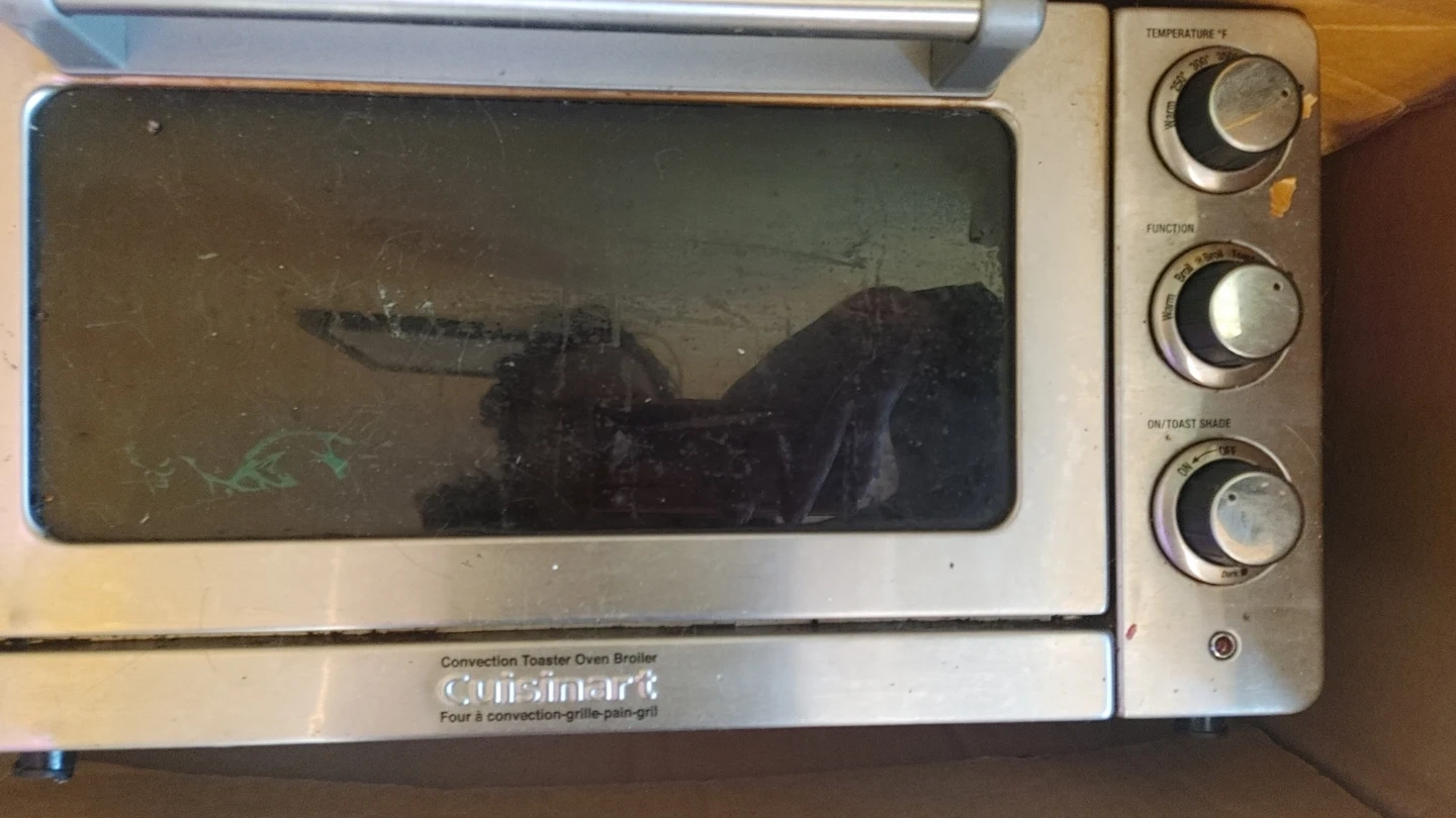 Free Cuisinart convection toaster oven broiler. It has temperature control in Fahrenheit, a function knob, and an on/toast shade selector. Perfect for all your toasting and broiling needs!