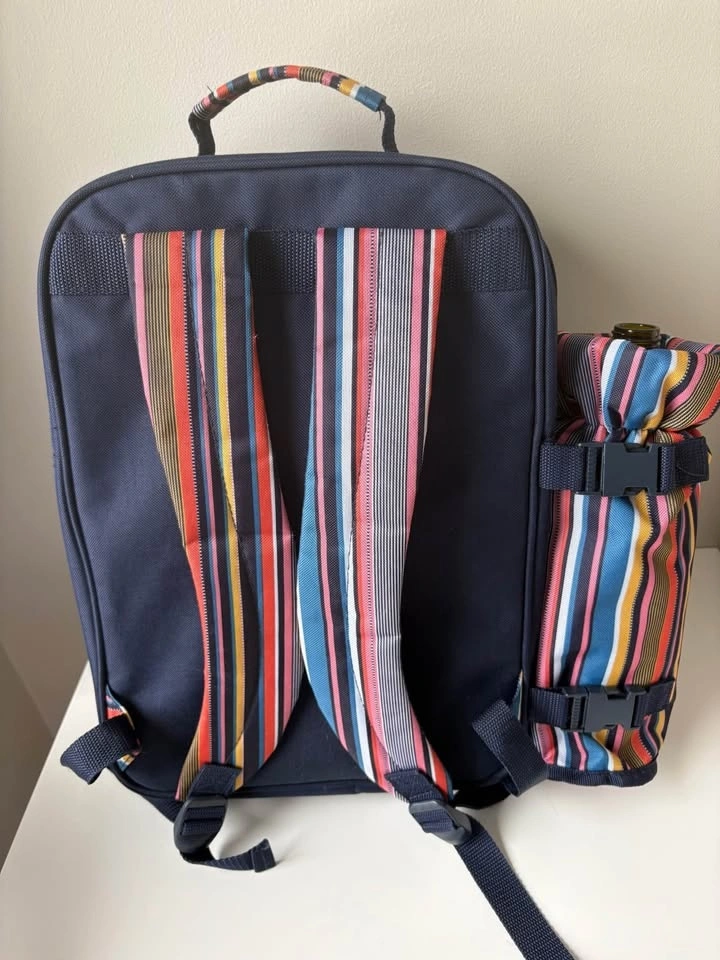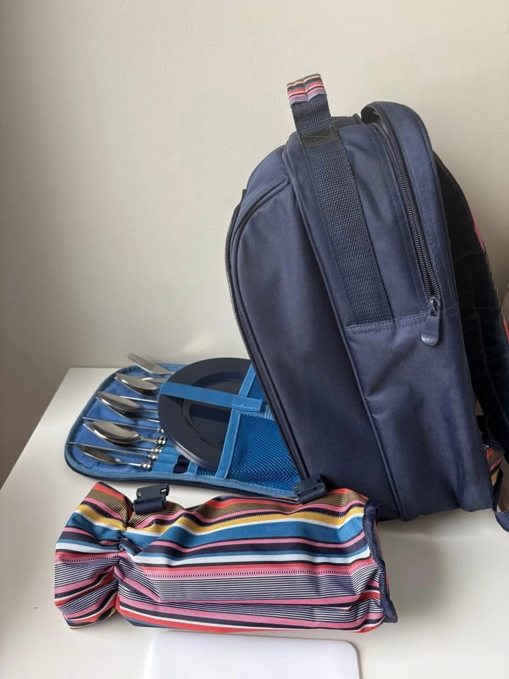 Complete 4-Person Picnic Backpack – Excellent Condition (Never used). Upgrade your outdoor dates or family outings with this all-in-one picnic rucksack. It’s designed to keep your hands free while carrying everything you need for a meal for four. Full Dining Set: Includes 4 plates, 4 wine glasses, 4 sets of stainless steel cutlery, a bottle opener and cutting board. Insulated Compartment: Large thermal-lined section to keep food and drinks cold for hours. Detachable Wine Cooler: Insulated side pocket specifically for a wine or water bottle. Comfortable: Padded adjustable shoulder straps for easy carrying. Perfect for hiking, beach days, outdoor concerts, or a thoughtful wedding/anniversary gift. From a smoke-free home. Perfect for Kelso or Rattlesnake Point outings! Great Valentine’s Day gift!