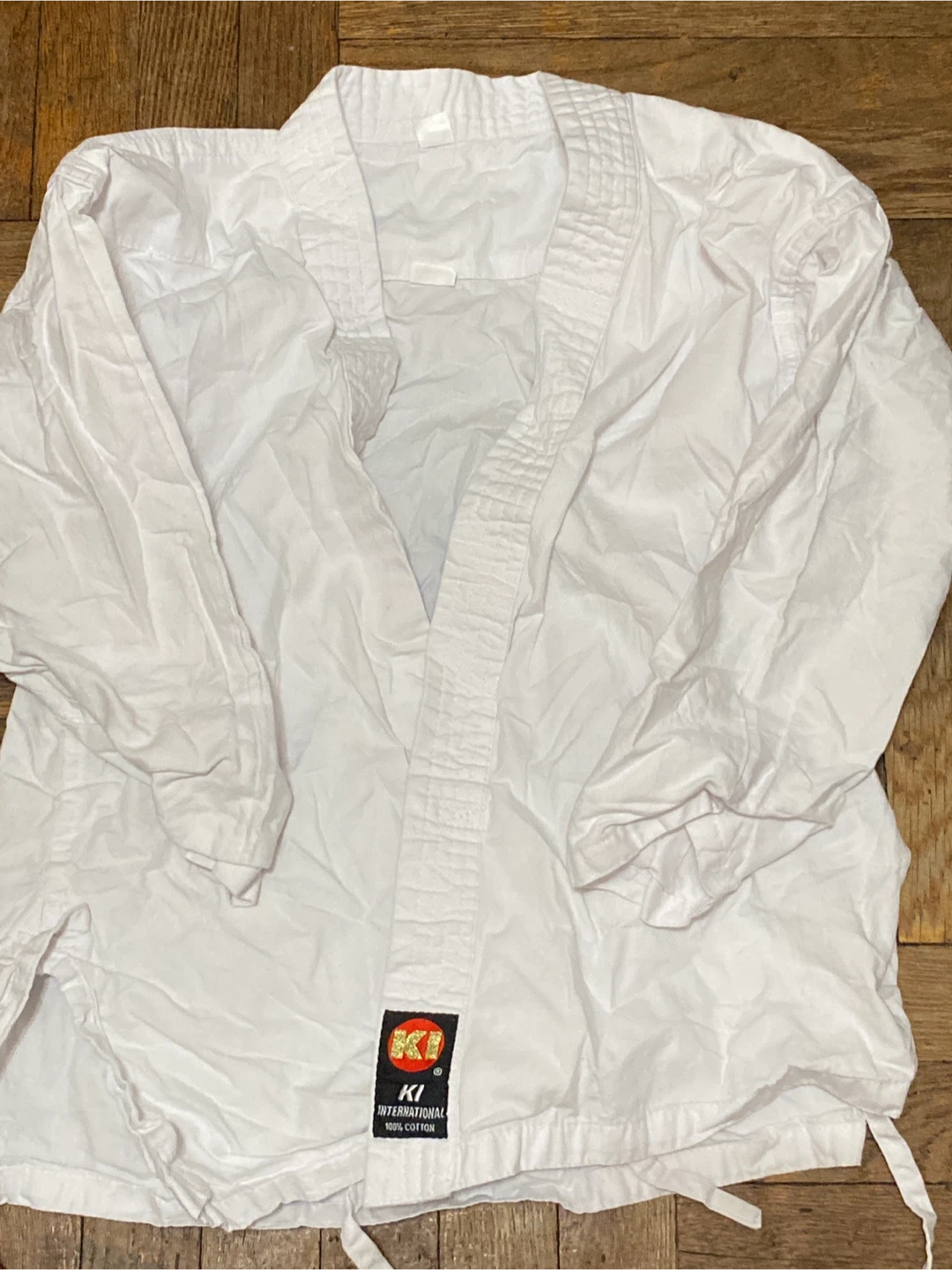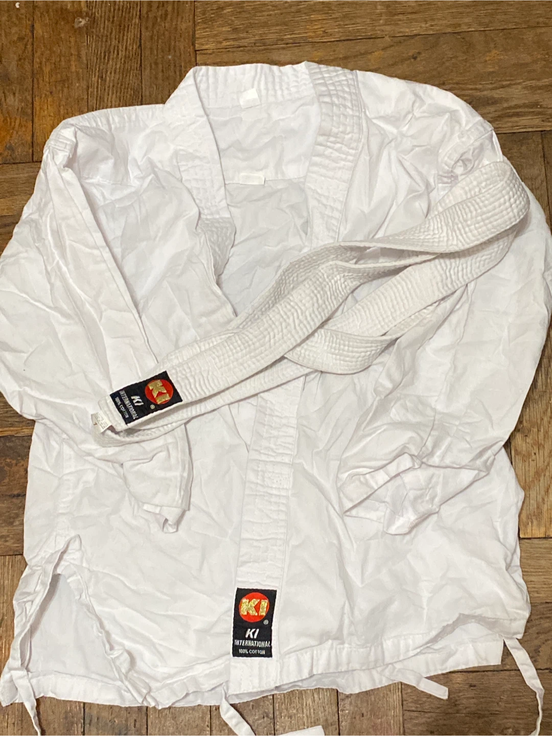 This K1 International Karate Gi is made from 100% cotton, offering comfort and durability for training. The set includes the white gi jacket and a white belt. It's ready for your next martial arts session! Size 1