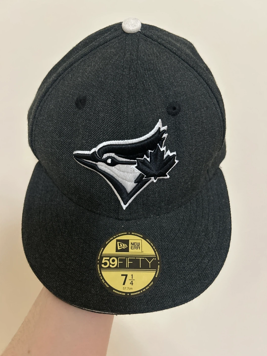 Rep your Toronto Blue Jays with this classic New Era 59FIFTY fitted hat. It's a size 7 1/4, featuring the iconic team logo. In good condition, hardly worn.